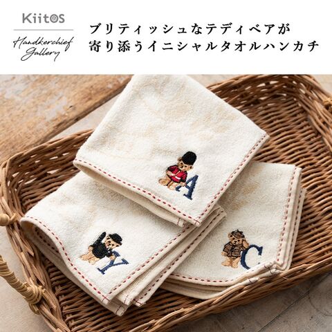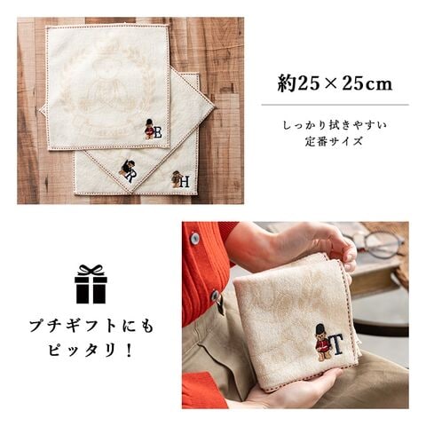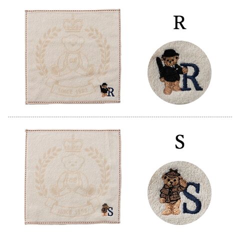 タオルハンカチ ブランド イニシャル 刺繍 レディース メンズ ギフト 綿100 グレート・ブリティッシュ・テディベア おしゃれ 25cmx25cm R