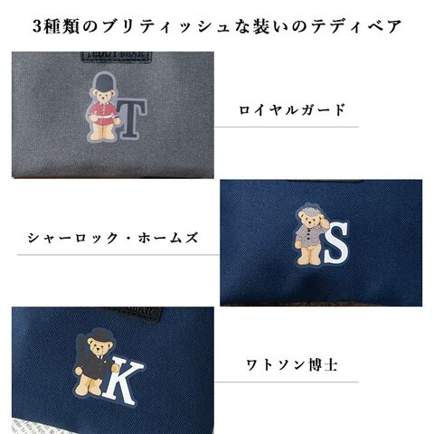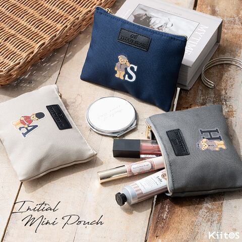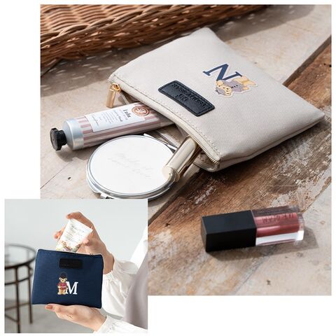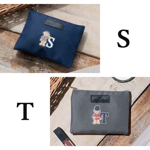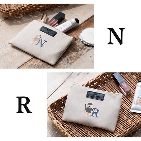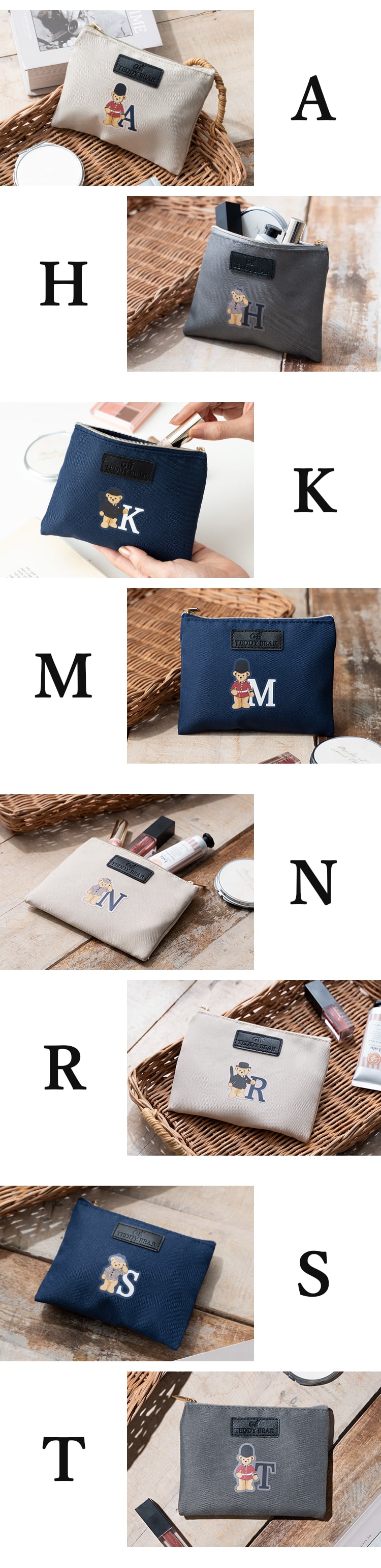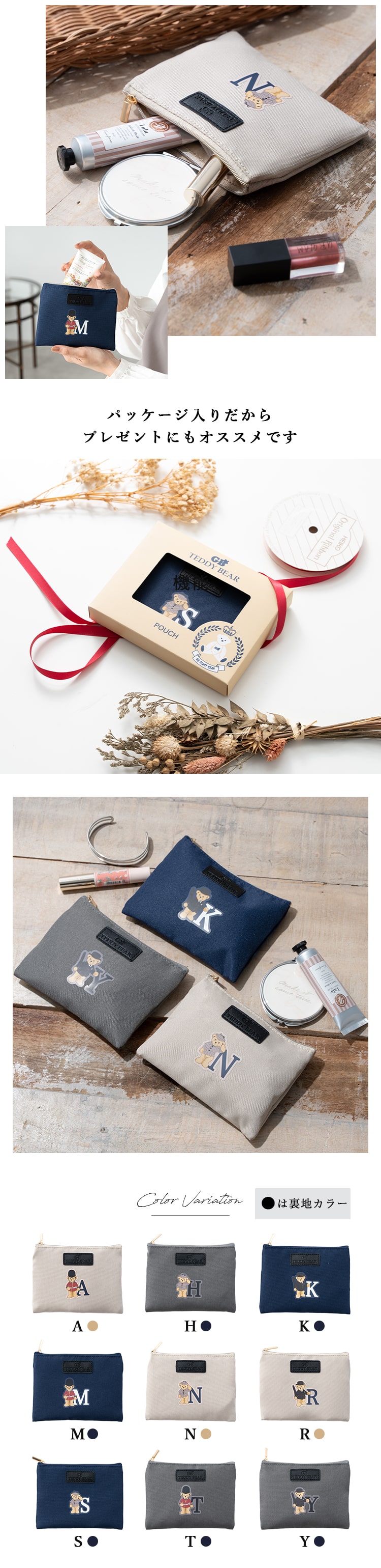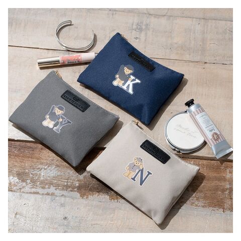 9種類のイニシャルと3種類のテディベアのイラストを組み合わせイニシャルポーチ。