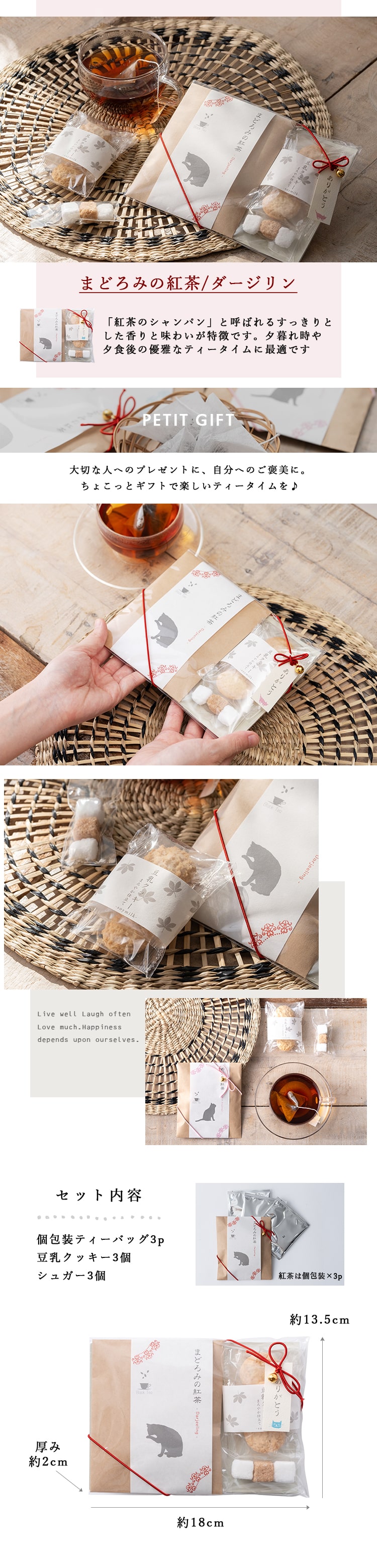 朝昼晩、いろんな時間に合わせて飲みたい紅茶に、豆乳クッキーとお砂糖がセットされたギフト。