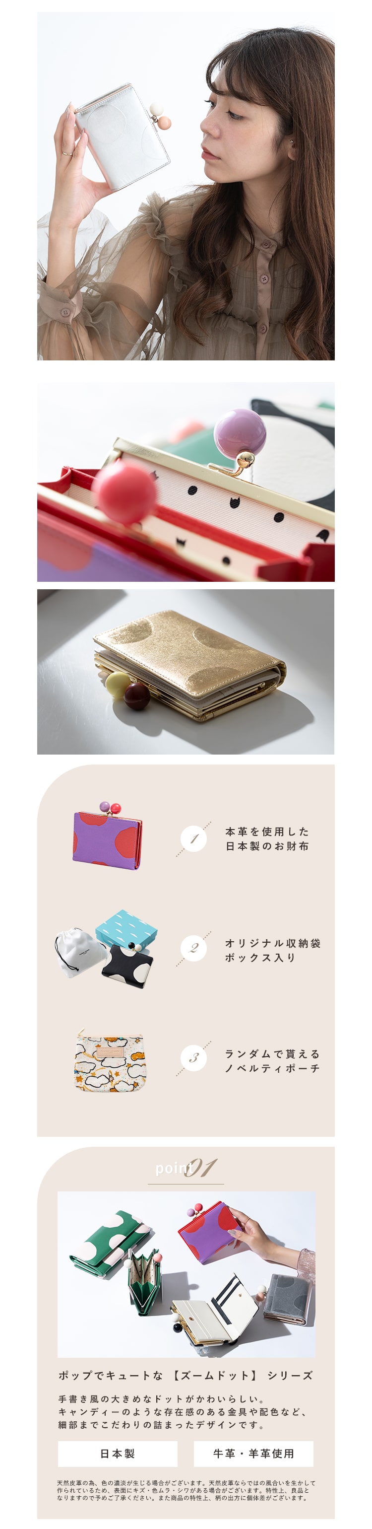 財布 レディース 二つ折 ブランド ツモリチサト がま口 ドット おしゃれ 大人 かわいい ノベルティポーチ付き ギフト Gold