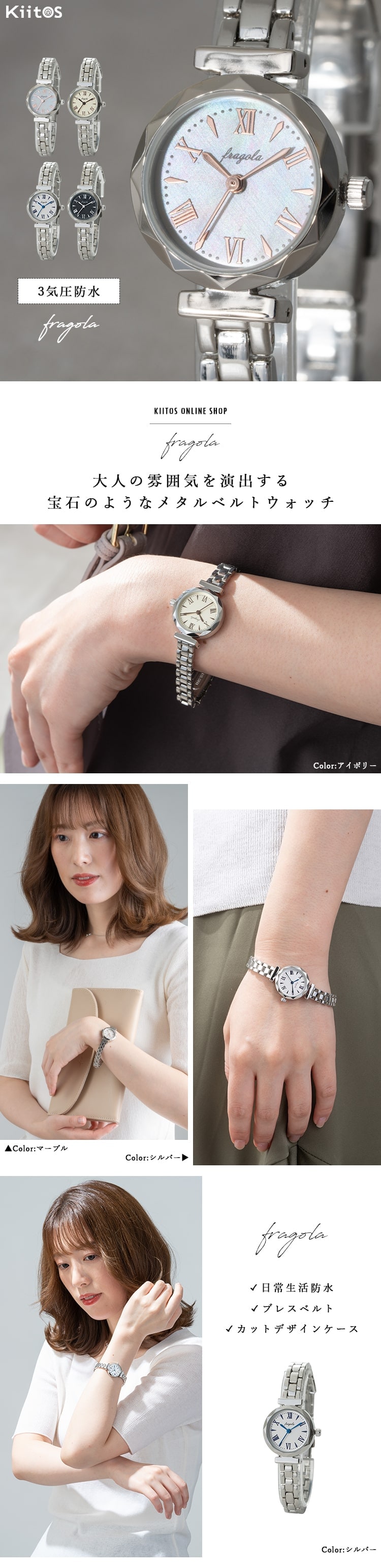 腕時計 レディース ブランド 3気圧防水 カットベゼル 金属ベルト おしゃれ 大人 20代 30代 40代 ギフト 日本製ムーブメント 1年間のメーカー保証付 マーブル