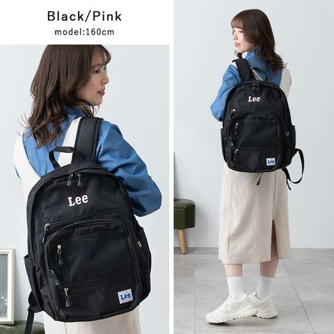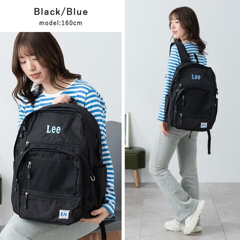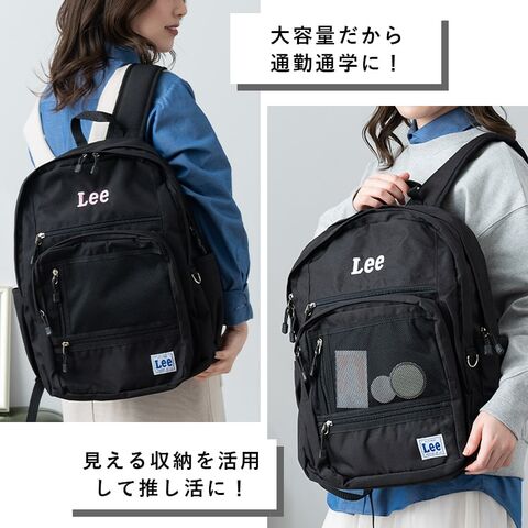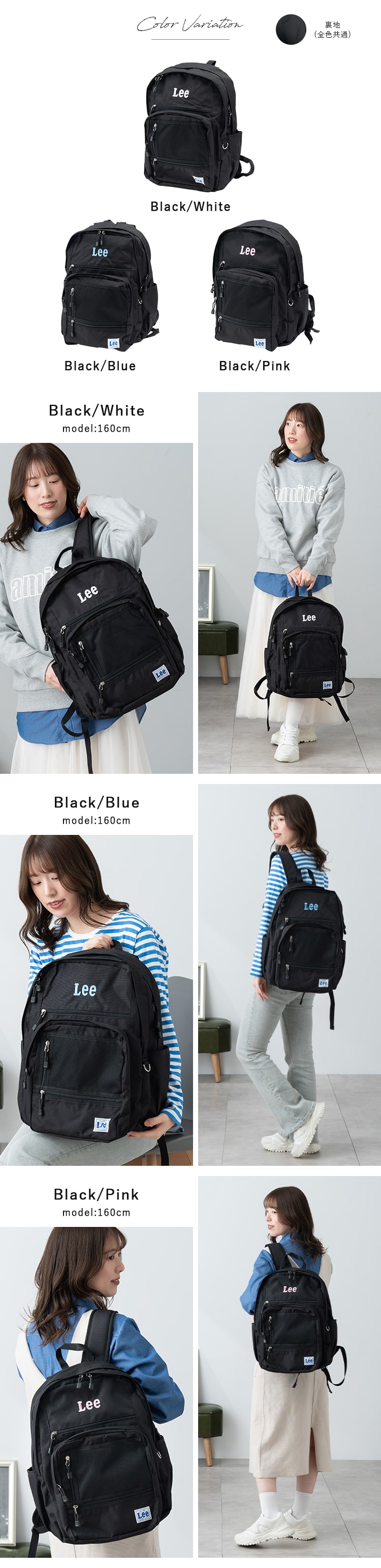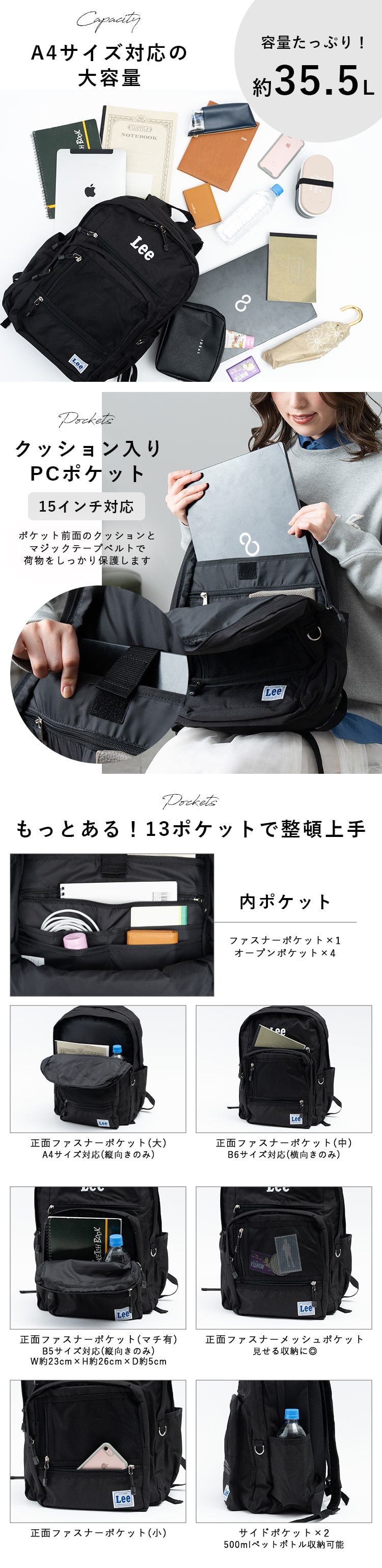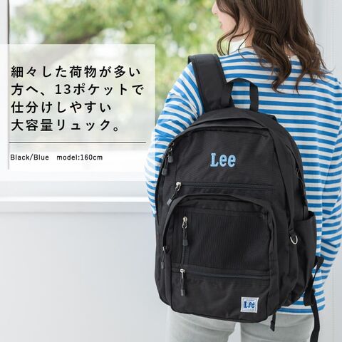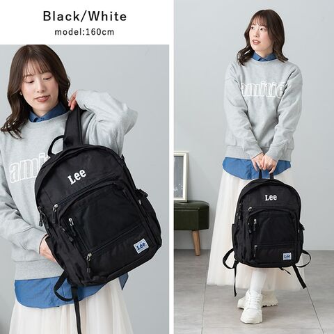 リュック 大容量 ブランド Lee レディース メンズ 13ポケット 学生 a4 撥水 軽量 pc 15インチ おしゃれ Black/White