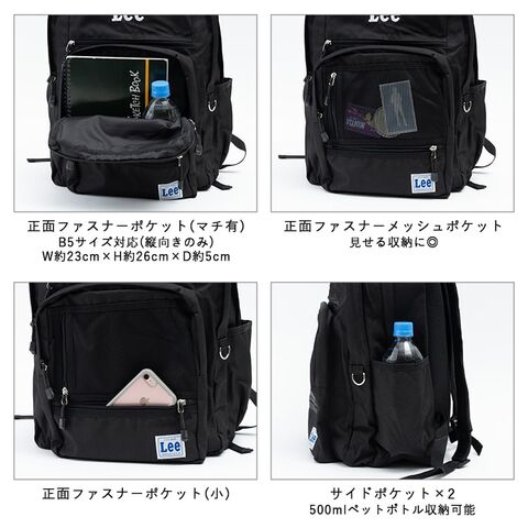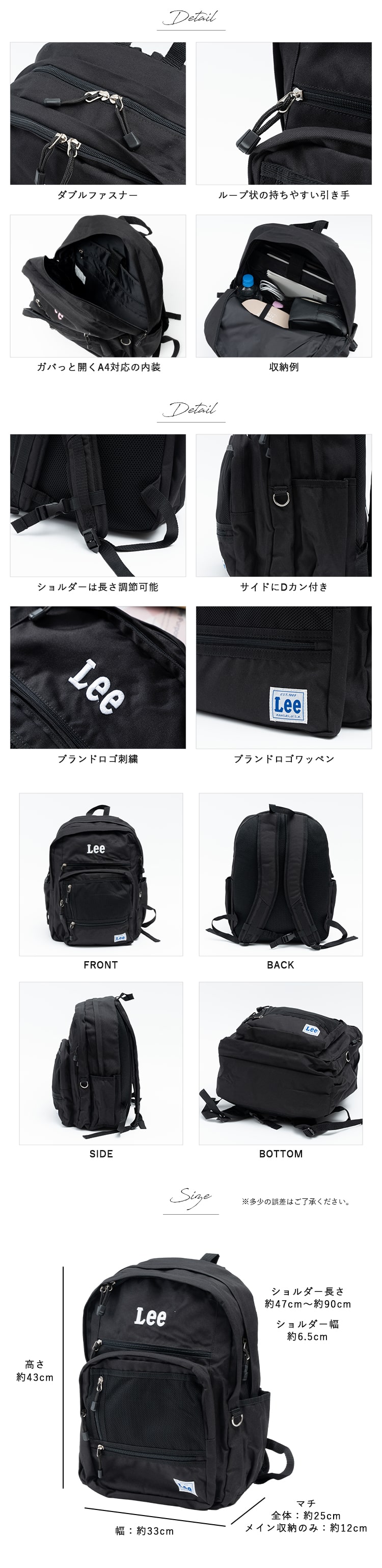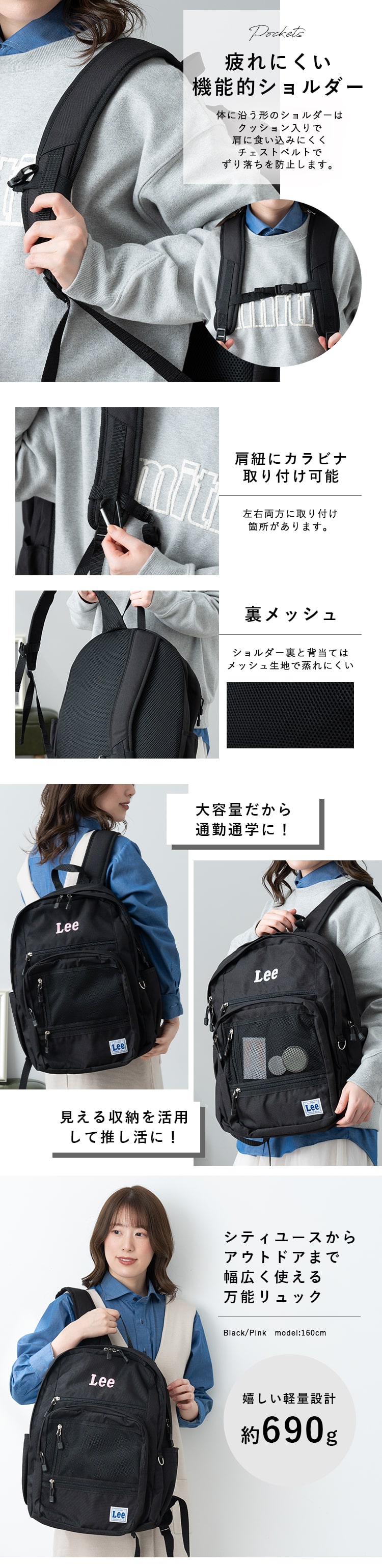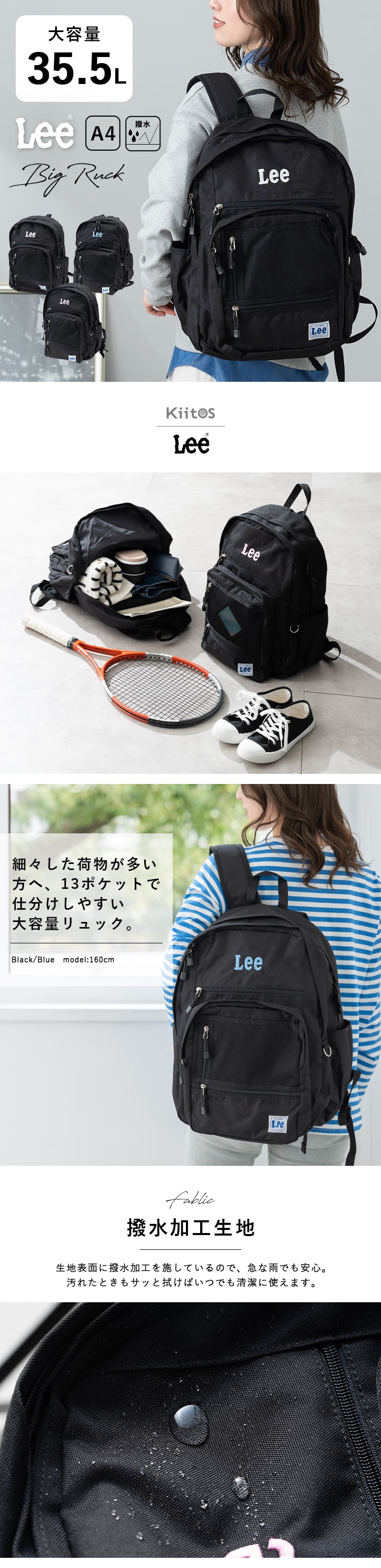 リュック 大容量 ブランド Lee レディース メンズ 13ポケット 学生 a4 撥水 軽量 pc 15インチ おしゃれ Black/White
