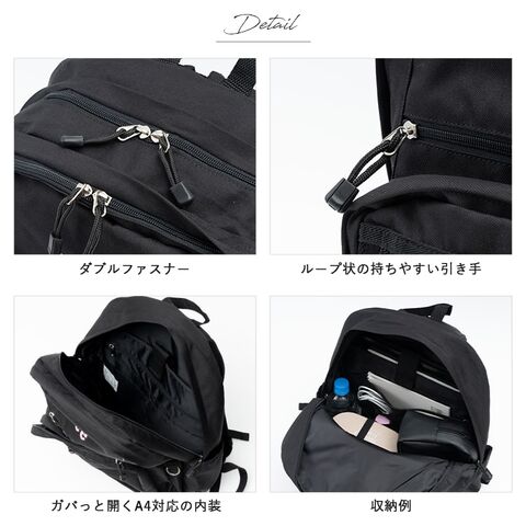 A4サイズ対応、容量約35.5Lの大容量で、通勤通学はもちろん小旅行にも便利なサイズです。