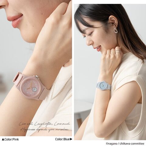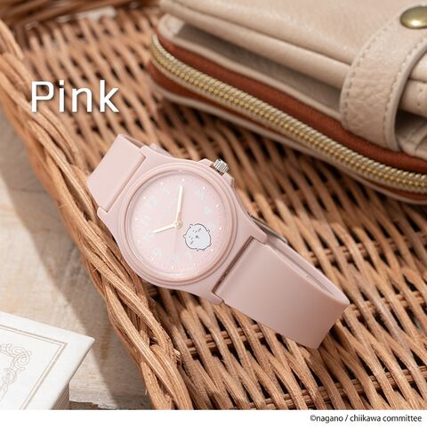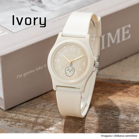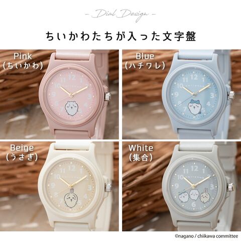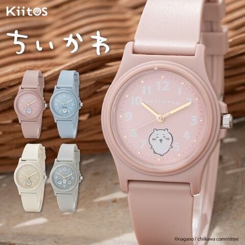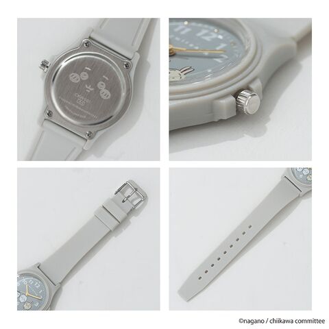 ちいかわたちの可愛いイラストが文字盤に描かれたシリコンベルトの腕時計。