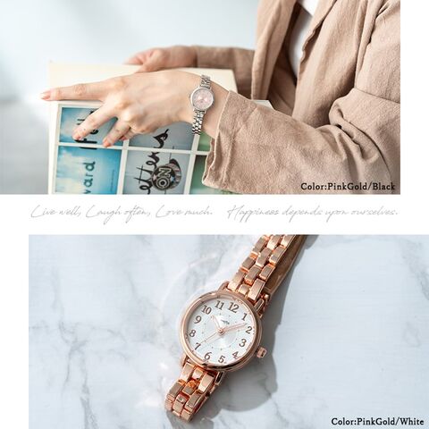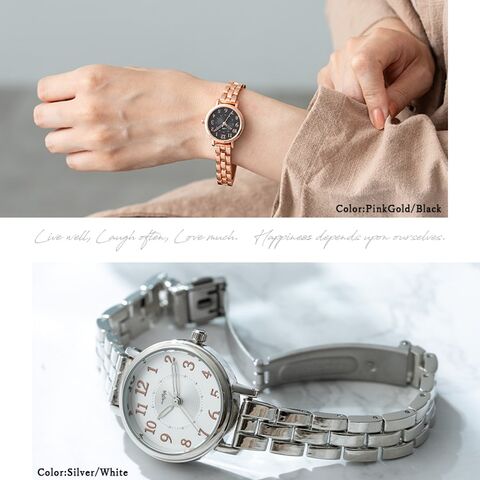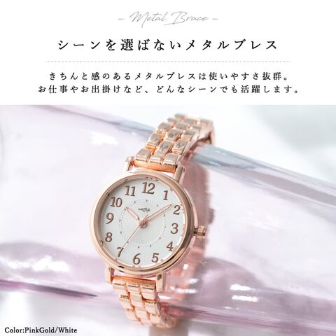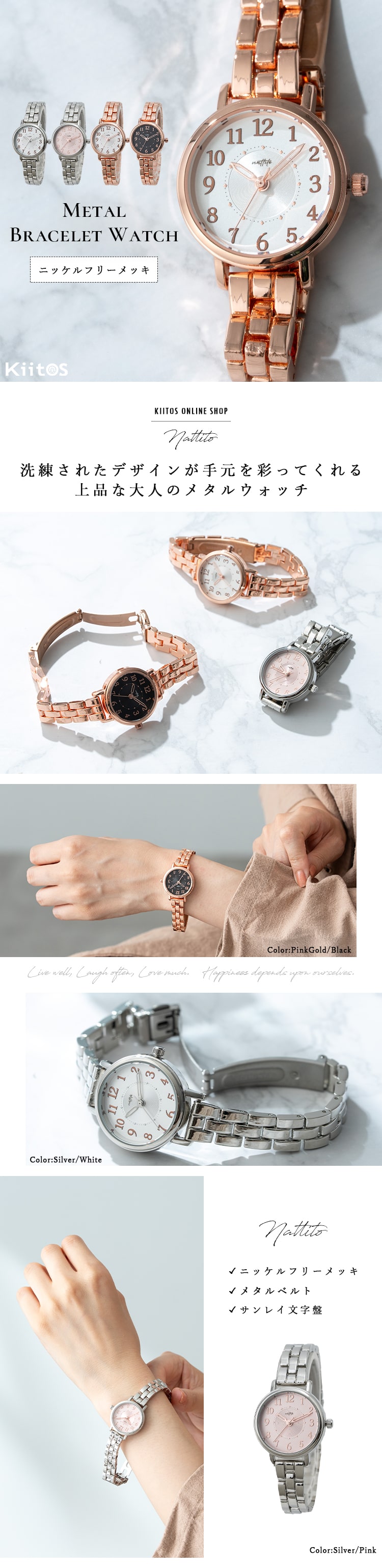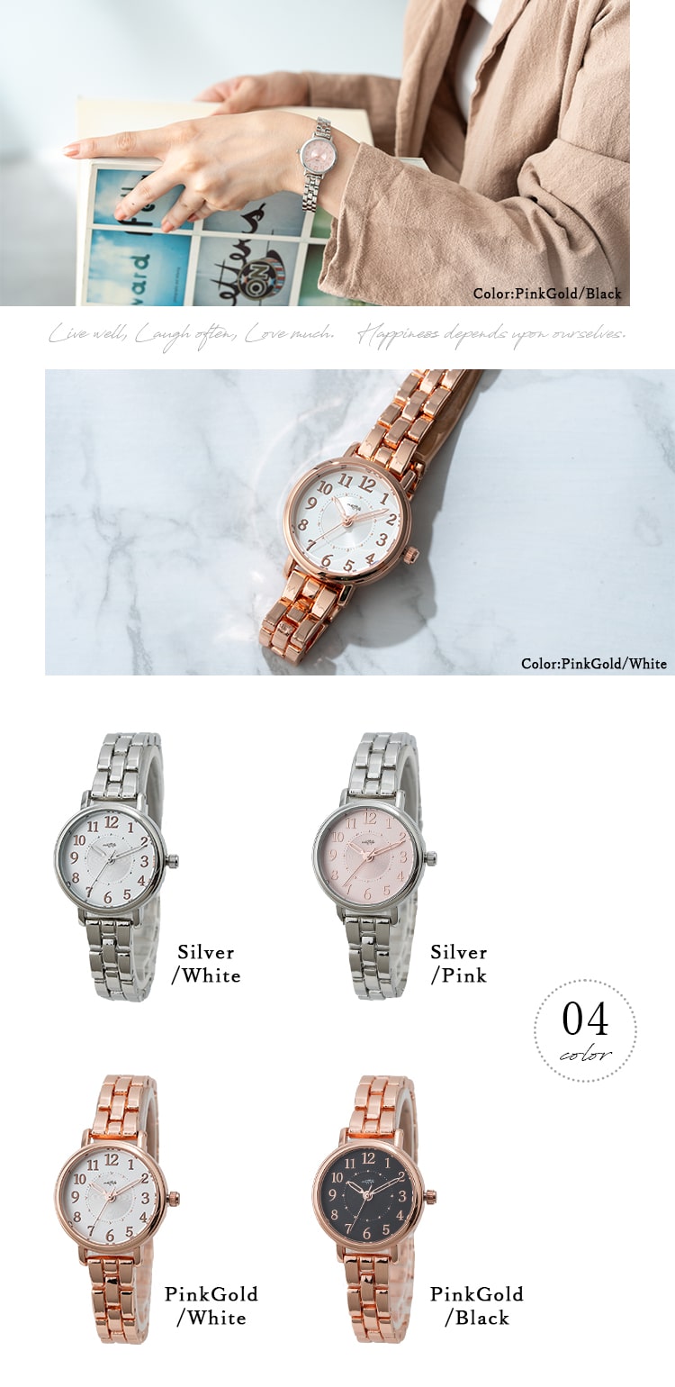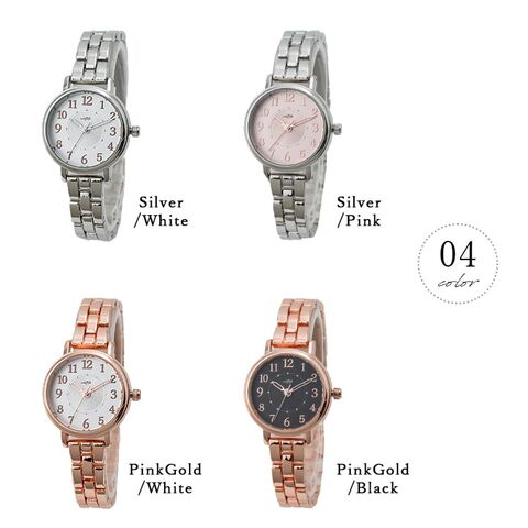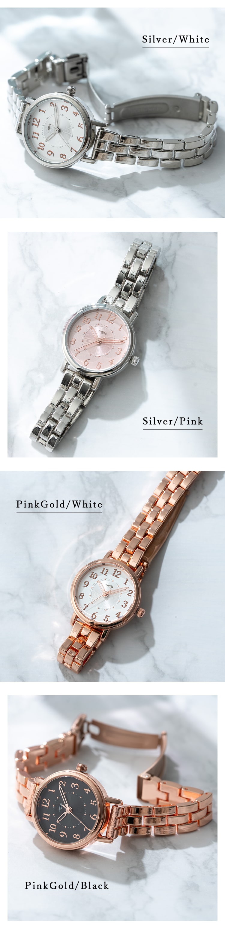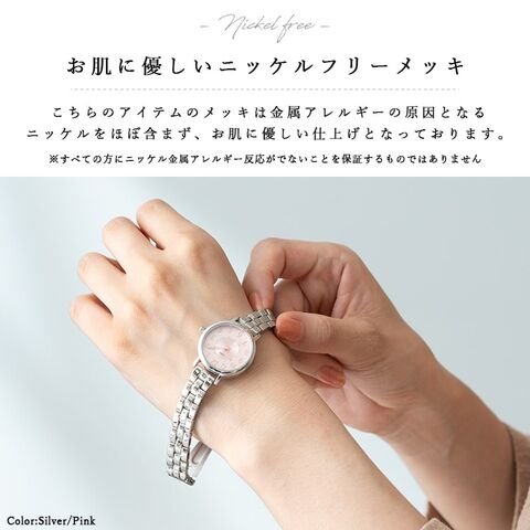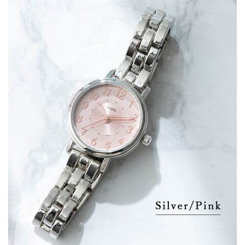 腕時計 レディース ニッケルフリー 小ぶり 金属ベルト バイカラー おしゃれ 大人 20代 30代 40代 ギフト 1年間のメーカー保証付 Silver/Pink