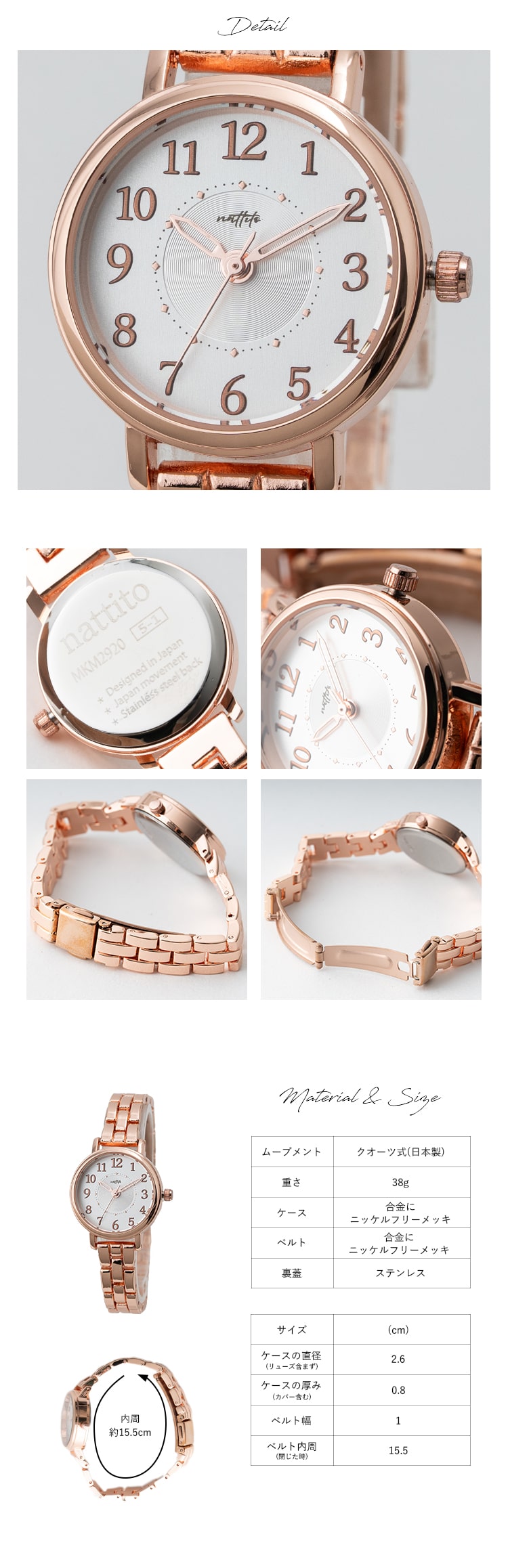 着脱がしやすいバックル式ベルトと、上品なフェイスが使い勝手も◎