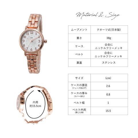 ・文字盤を含むケースの直径(リューズ含まず):約2.6cm