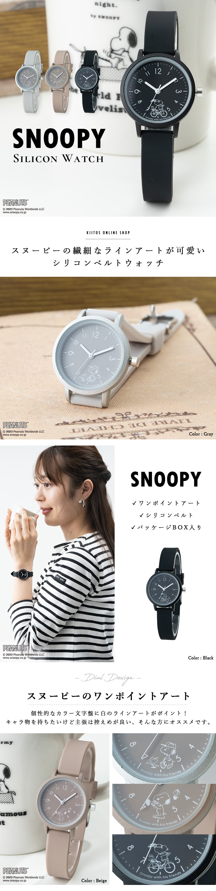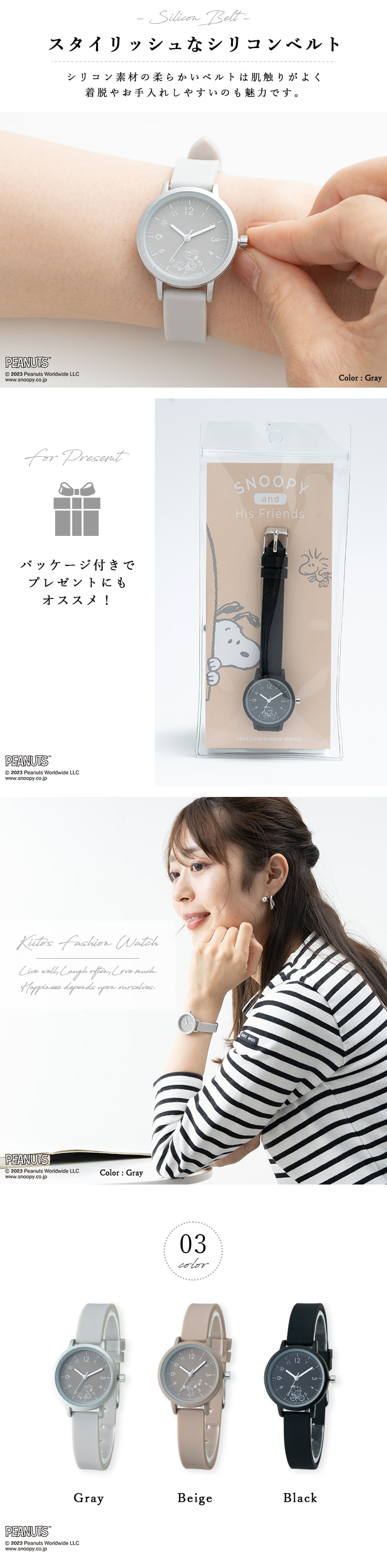 腕時計 レディース スヌーピー ブランド シリコン かわいい おしゃれ 大人20代 30代 40代 日本製ムーブメント ギフト 1年間のメーカー保証付 Gray