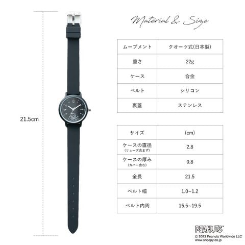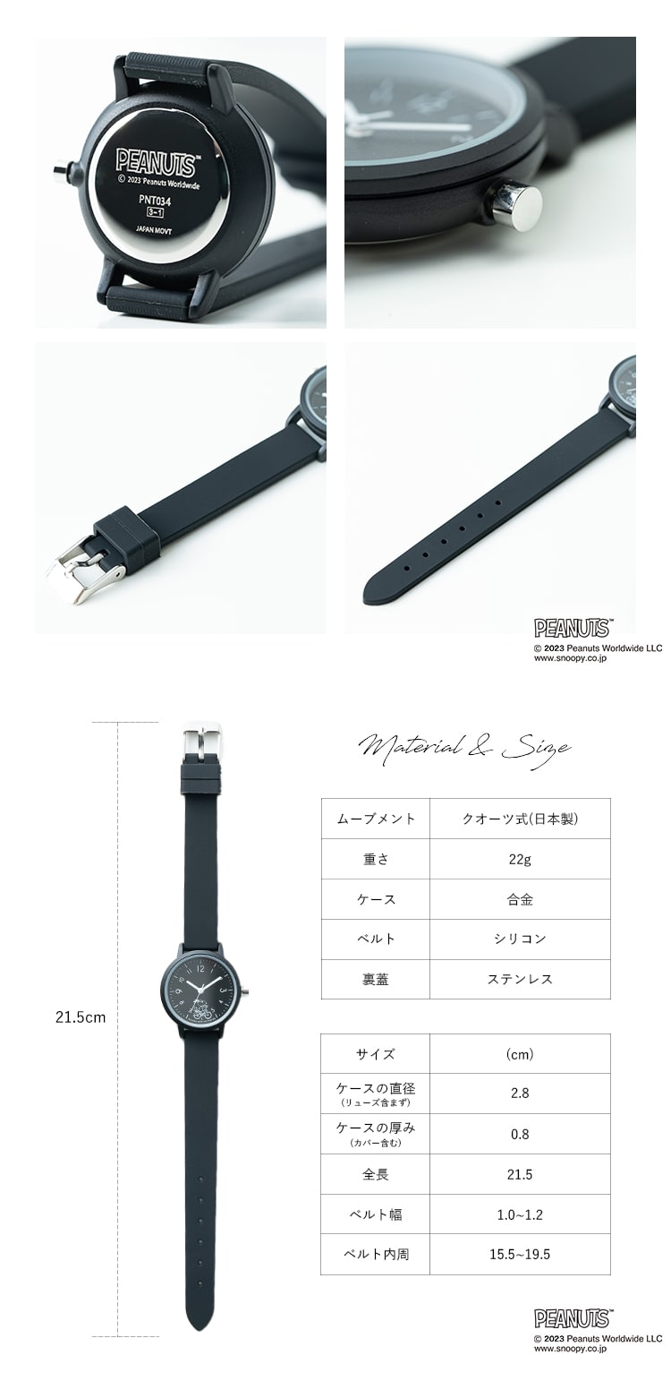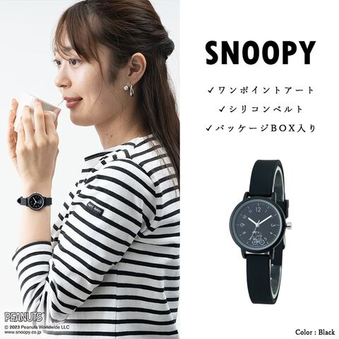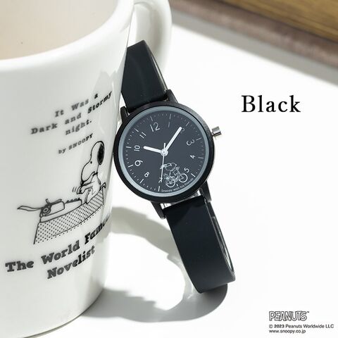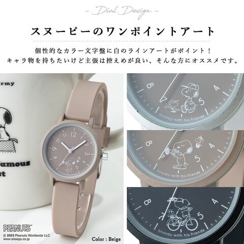 スヌーピーのさりげないラインアートが可愛いラバーウォッチ。