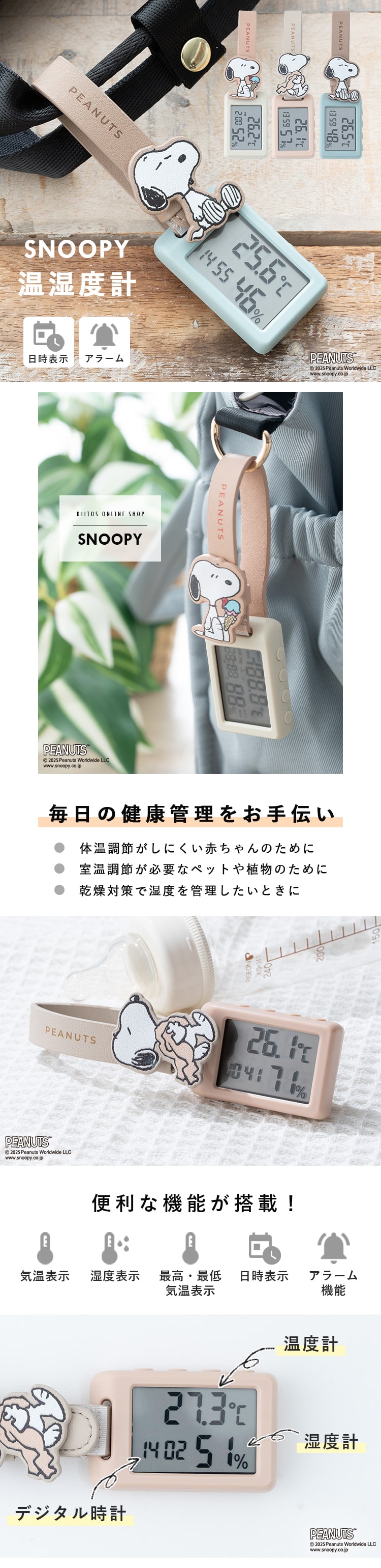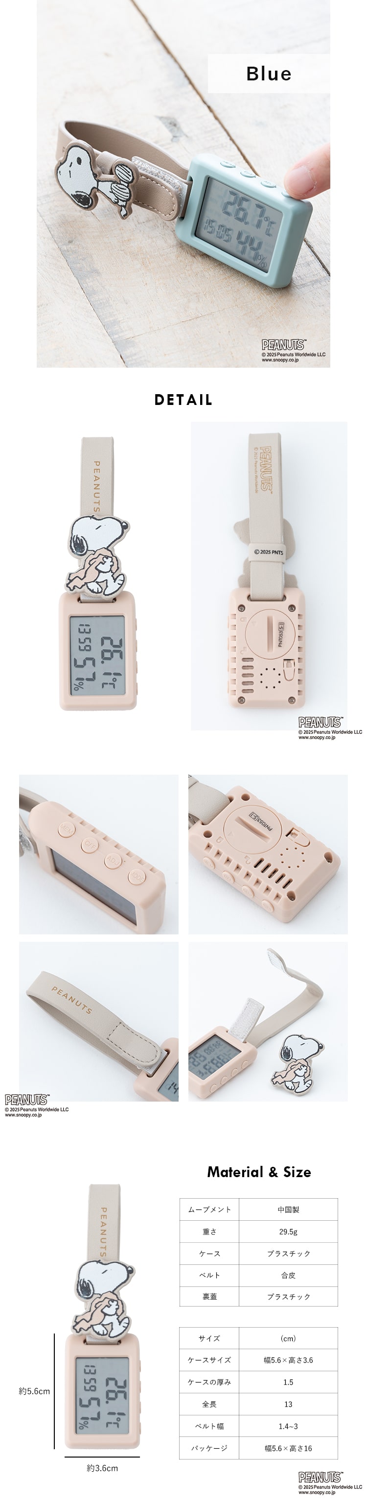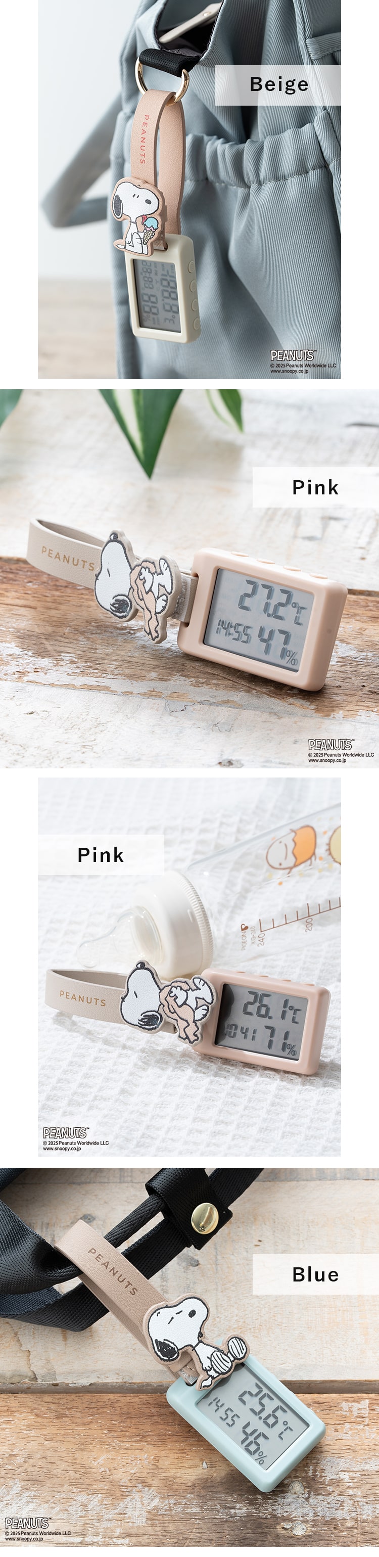 温湿度計 デジタル スヌーピー おしゃれ 持ち運び 小型 ベビー 2way アラーム ギフト 6か月メーカー保証付 Blue