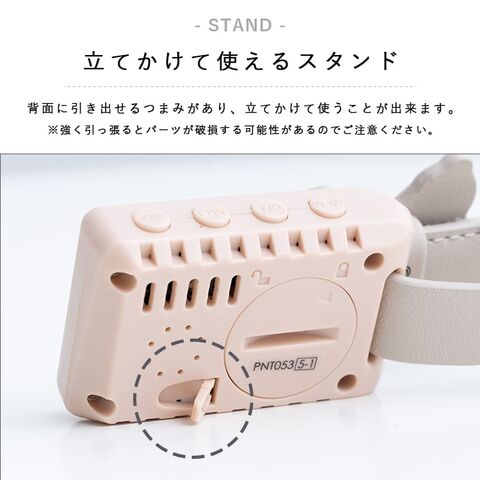 背面に引き出せるつまみがあり、立てかけて使うことが出来ます。
