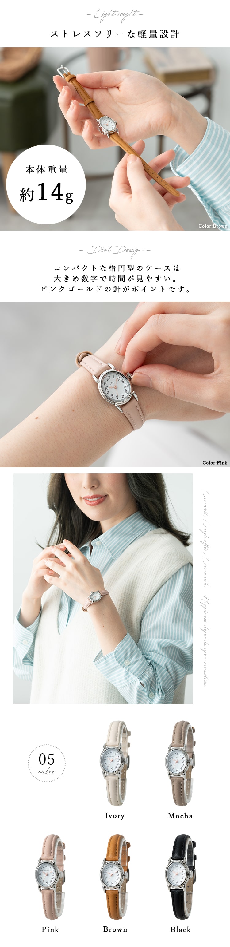 腕時計 レディース 楕円 小ぶり シンプル 軽量 おしゃれ 大人 仕事 学生 20代 30代 40代 女性 ギフト 1年間のメーカー保証付 Ivory