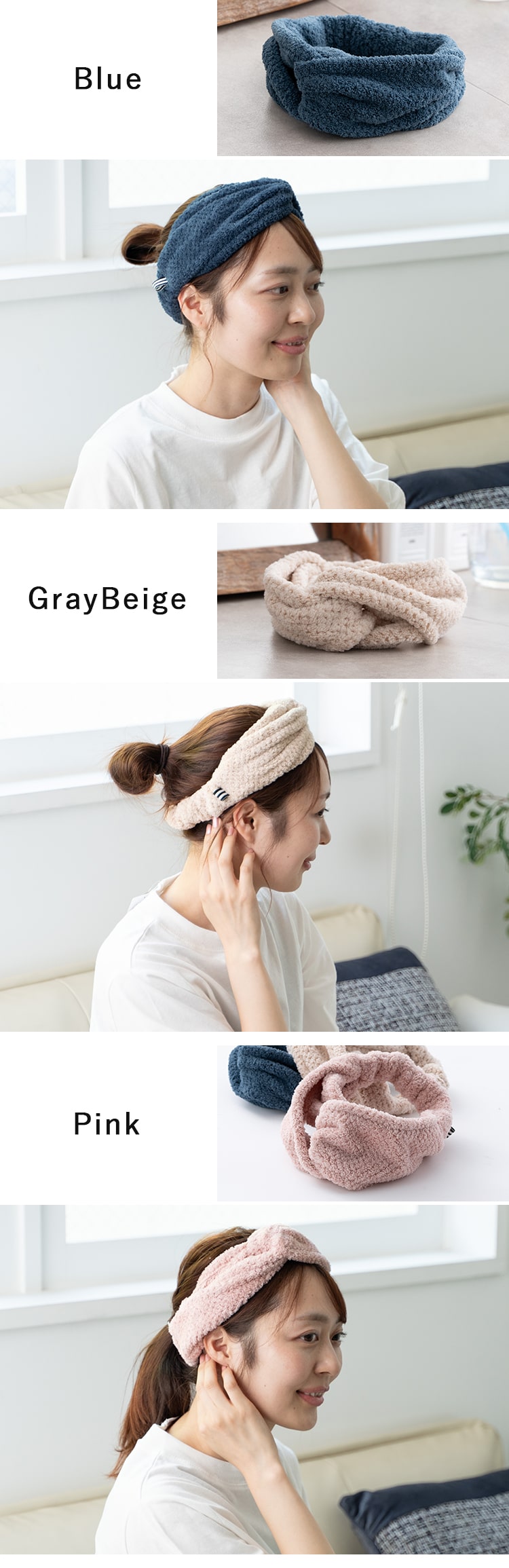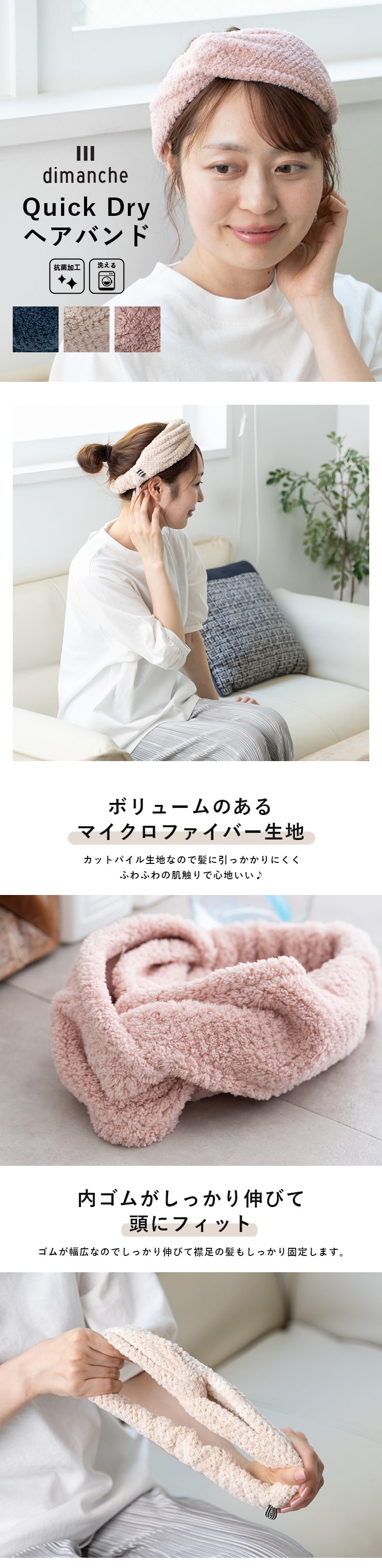 朝の洗顔や風呂上がり、メイク時に頼りになるドライキャップです!