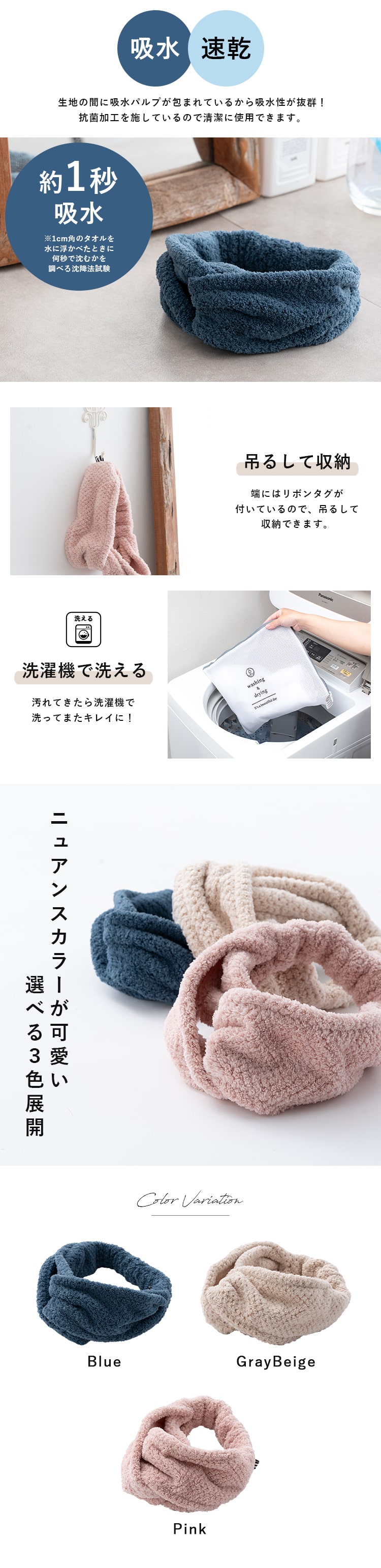 毎日使いで時短が叶う、吸水力抜群のタオルシリーズのヘアドライキャップ