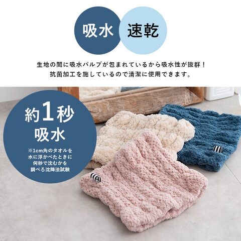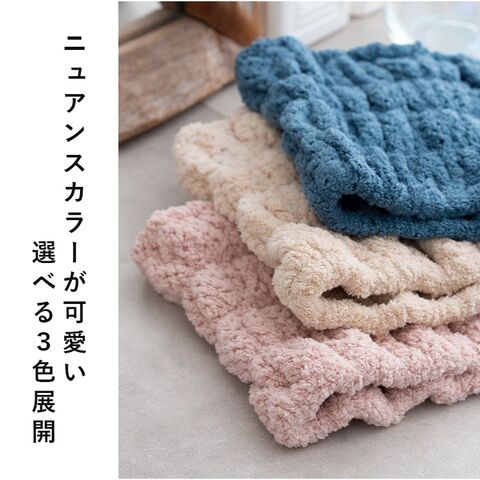 カットパイル生地なので髪に引っかかりにくく、ふわふわの肌触りで心地いいヘアタオル♪