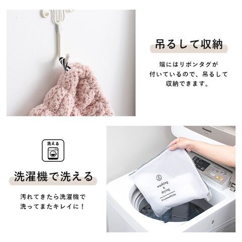 使わないときは吊るして収納でき、汚れたら洗濯機で洗えるので管理も簡単♪