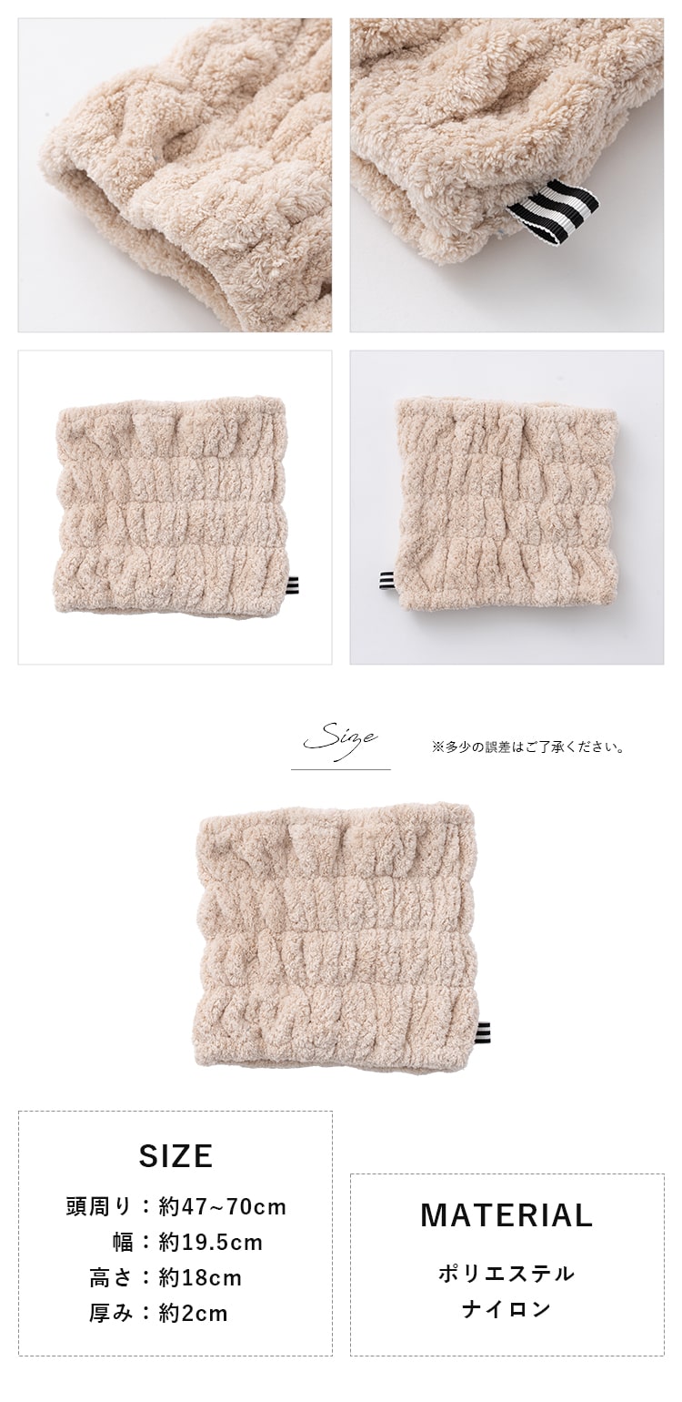毎日使いで時短が叶う、吸水力抜群のタオルシリーズの幅広ヘアドライキャップ
