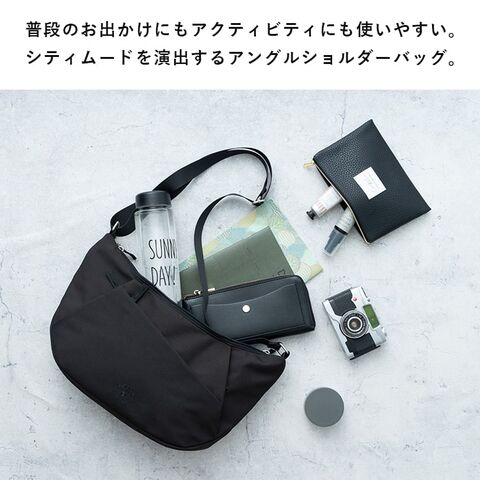 スタイリッシュなフォルムが目を惹くアングルショルダーバッグ。