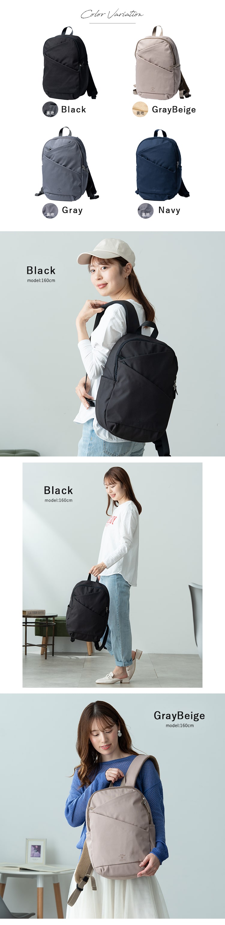 無駄のない洗練されたシルエットのアングルリュック。