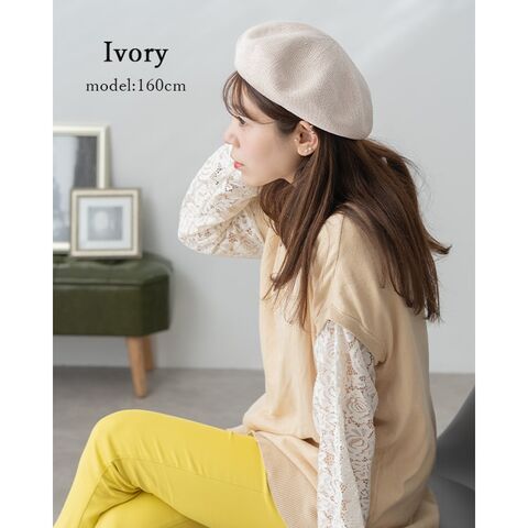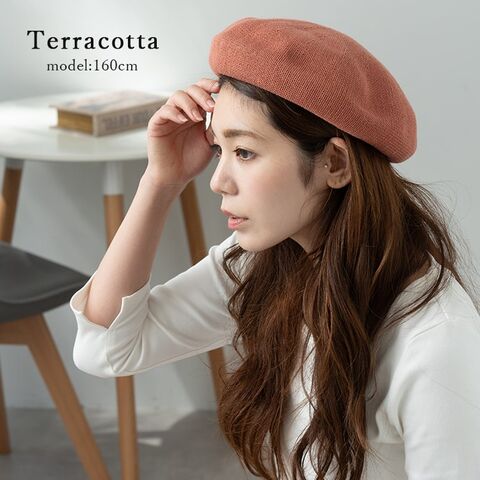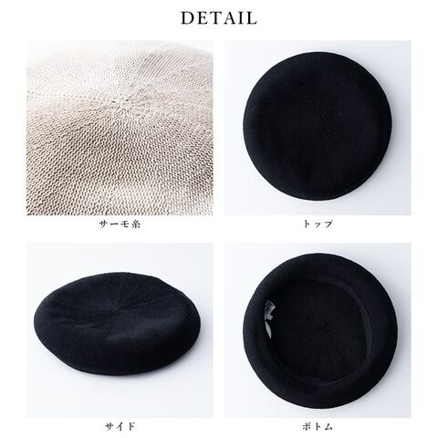 形状記憶する性質を持つサーモ糸を使用した綿混ベレー帽。