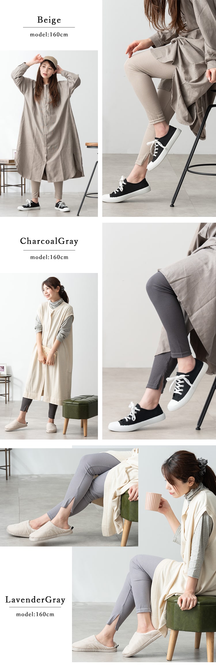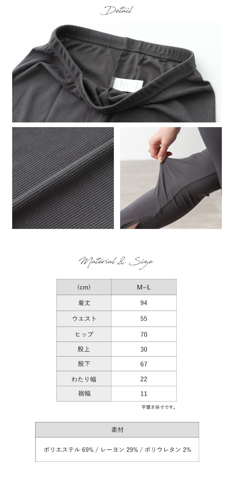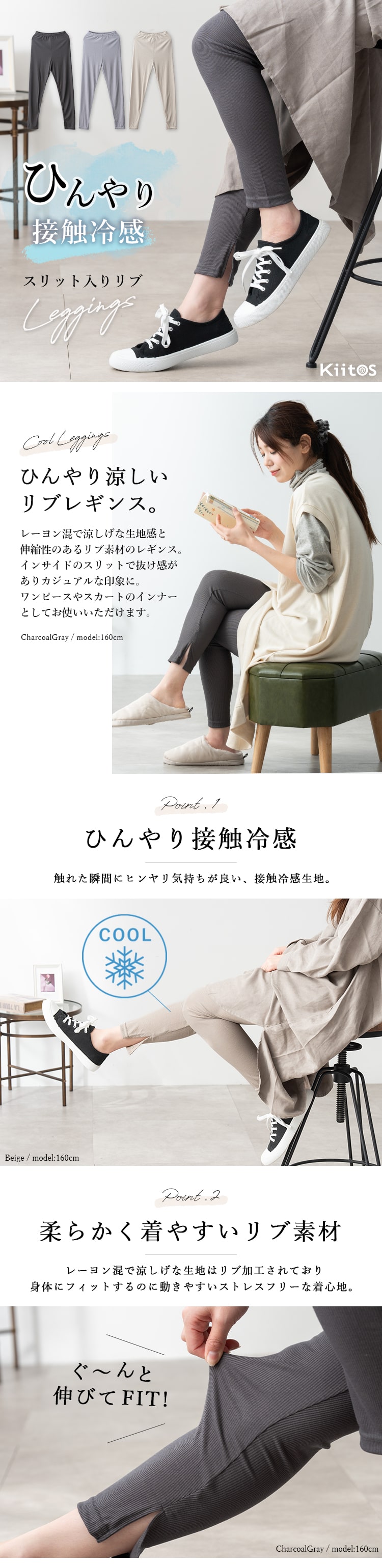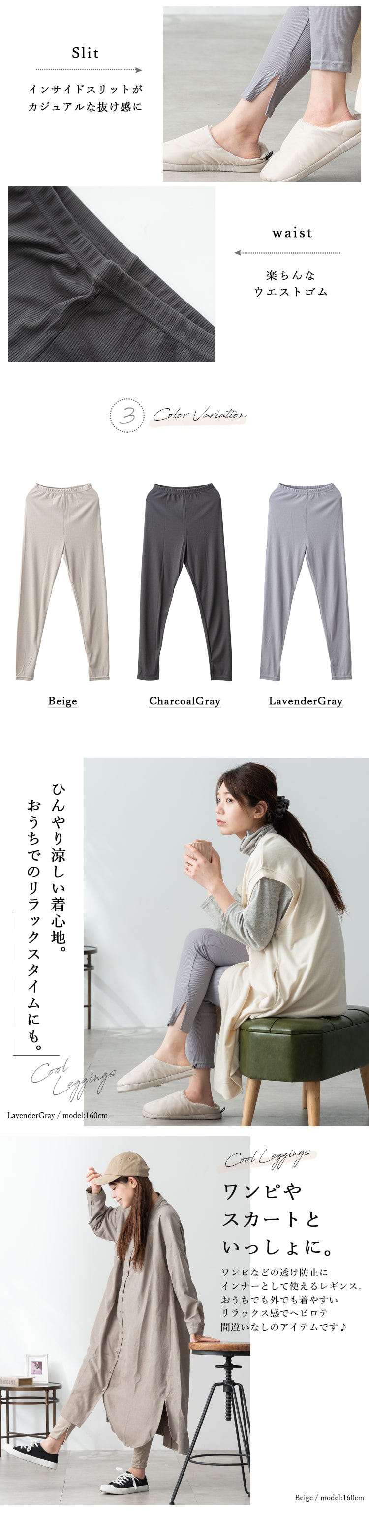 レギンス レディース リブ 伸びる ストレッチ 夏 接触冷感 インナー スリット 10分丈 滑らか 薄手 CharcoalGray