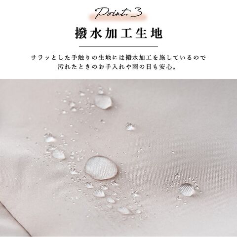 表地には撥水加工が施されているので、汚れたときのお手入れも簡単で雨の日も安心。