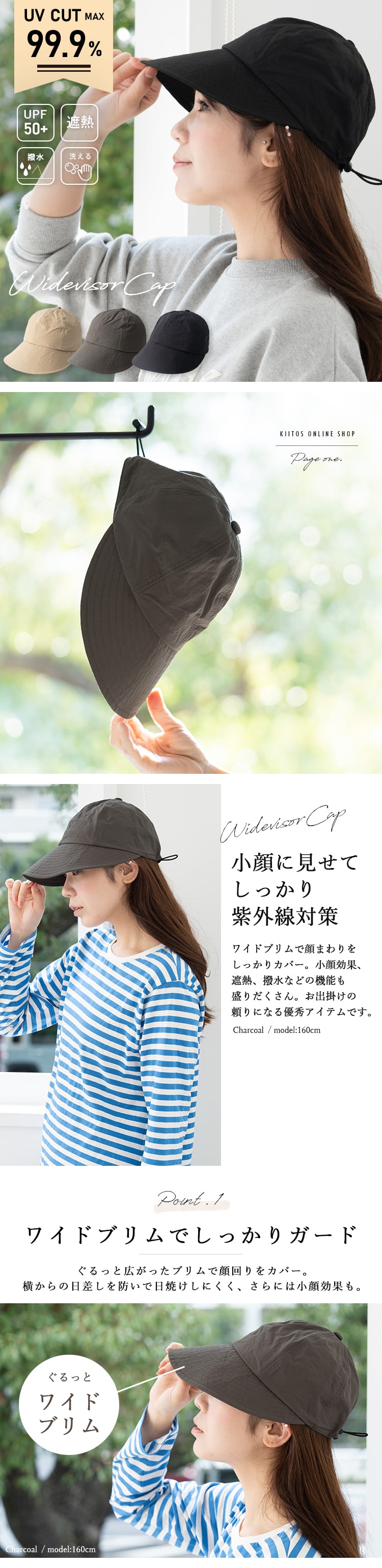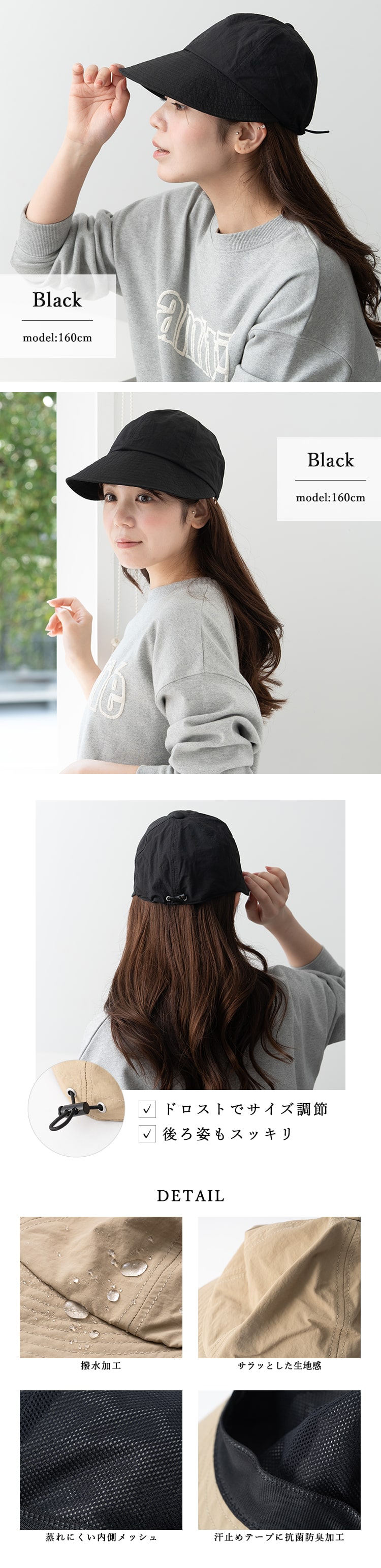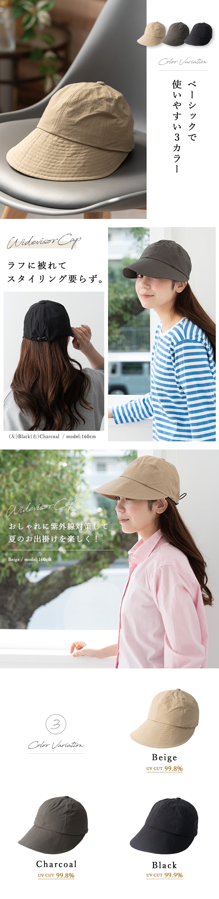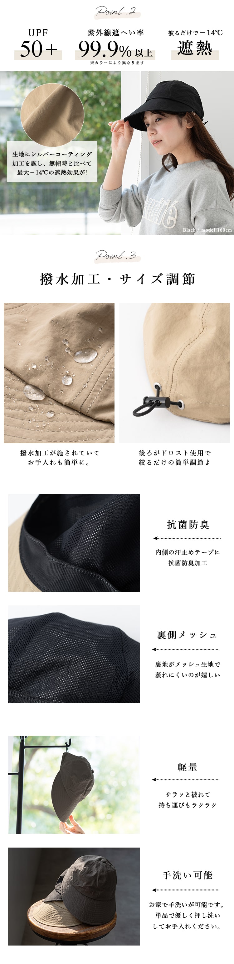 帽子 レディース キャップ uvカット upf50+ つば広 深め 撥水 軽量 遮熱 おしゃれ 小顔 洗える 洗濯 サイズ調節 抗菌防臭 春 夏 秋 ギフト Beige