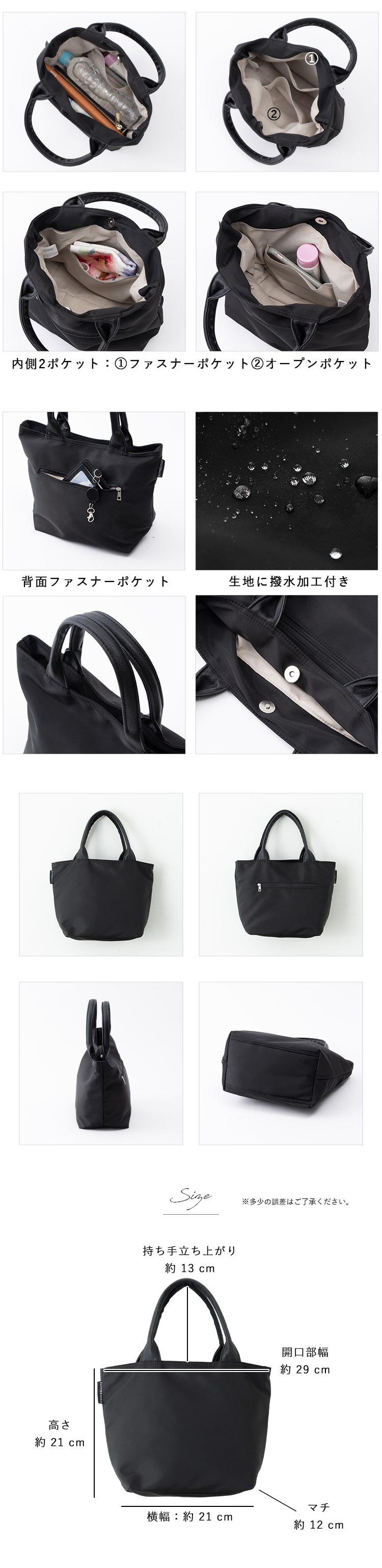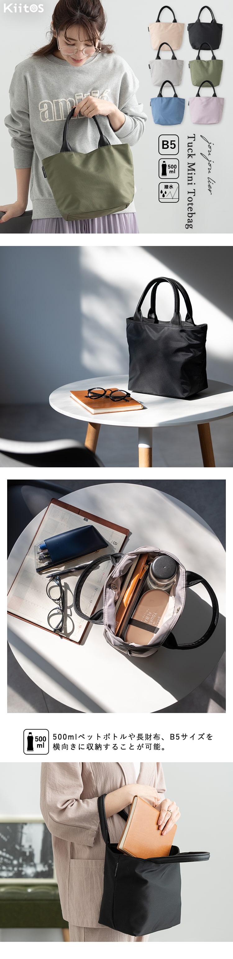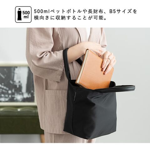 マチが広く、500mlペットボトルや長財布を横向きに収納することができるので、普段のお出かけはもちろんのこと、お仕事用のサブバッグやランチバッグとしてもお使いいただけます◎