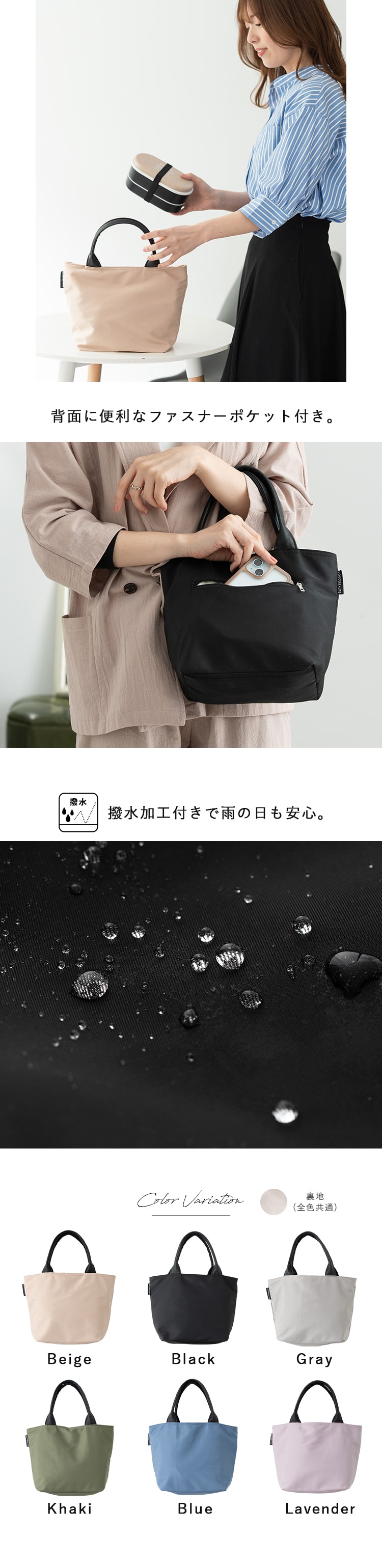 トートバッグ レディース 小さめ 撥水 軽量 ペットボトル ランチバッグ サブバッグ おしゃれ 大人 マチあり きれいめ ギフト Khaki