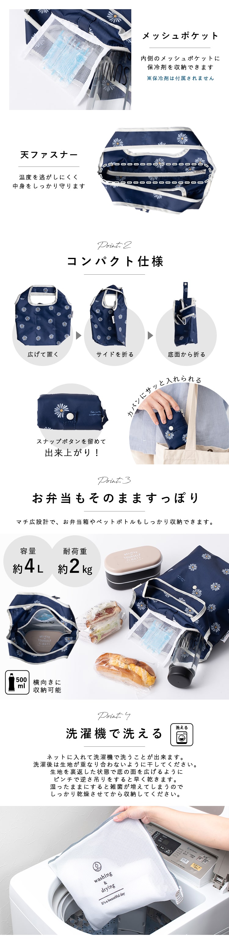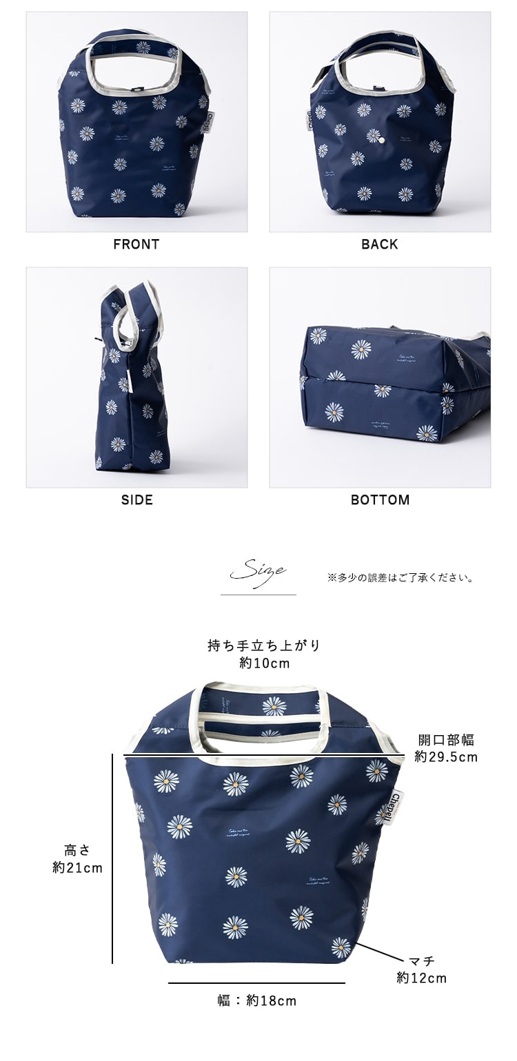 通勤通学のランチバッグや毎日のお買い物にちょうどいいサイズ感の保冷ミニトートバッグです。