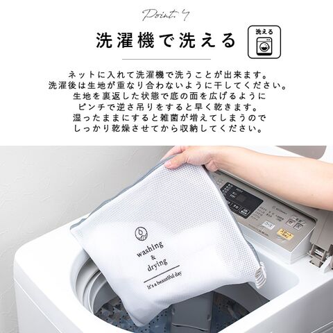 洗濯機で洗えるのでいつでも清潔に使えます。