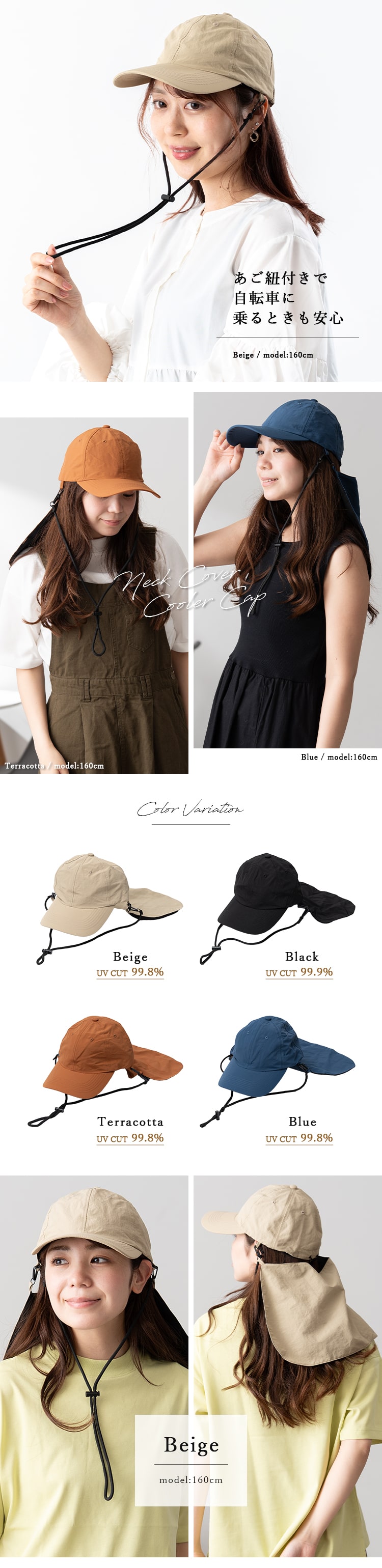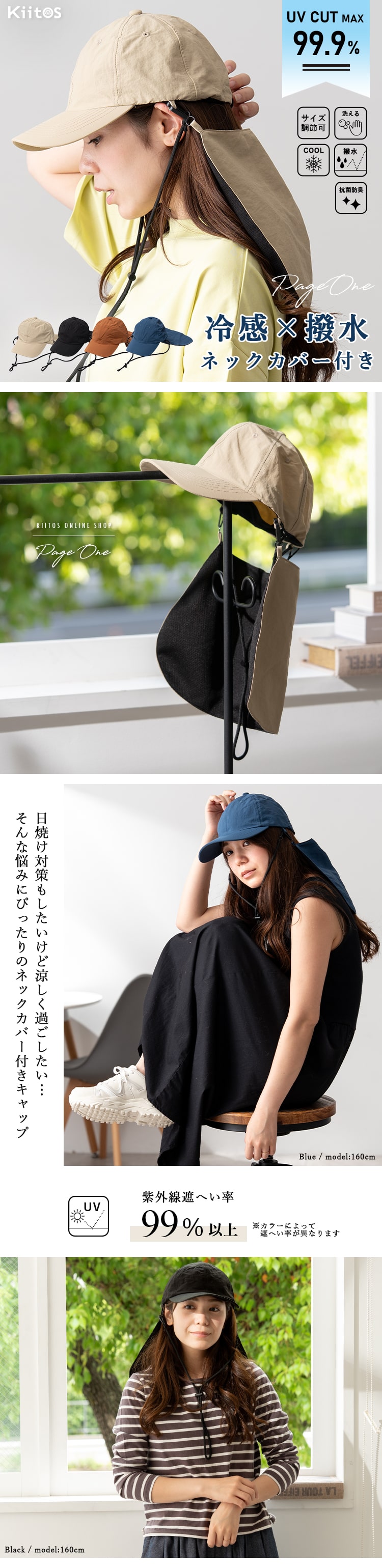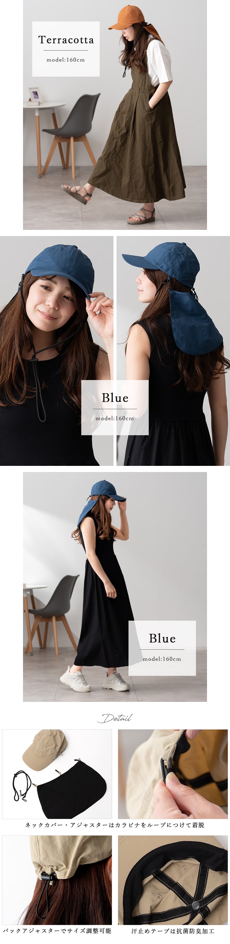 帽子 レディース キャップ 深め uvカット 撥水 冷感ネックカバー あご紐 洗える 抗菌防臭 軽量 サイズ調整可 おしゃれ たれ付き 春 夏 秋 ギフト Blue