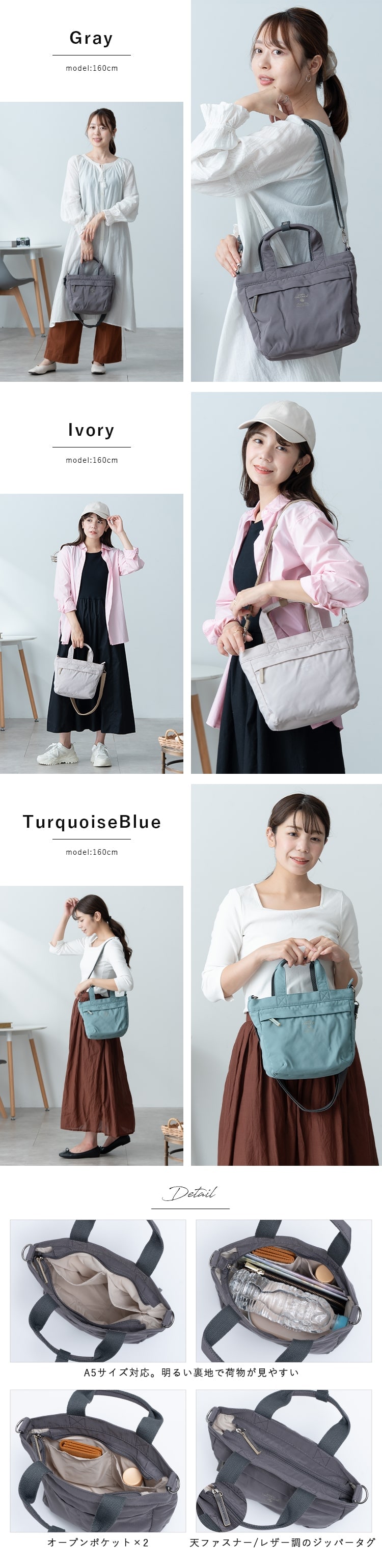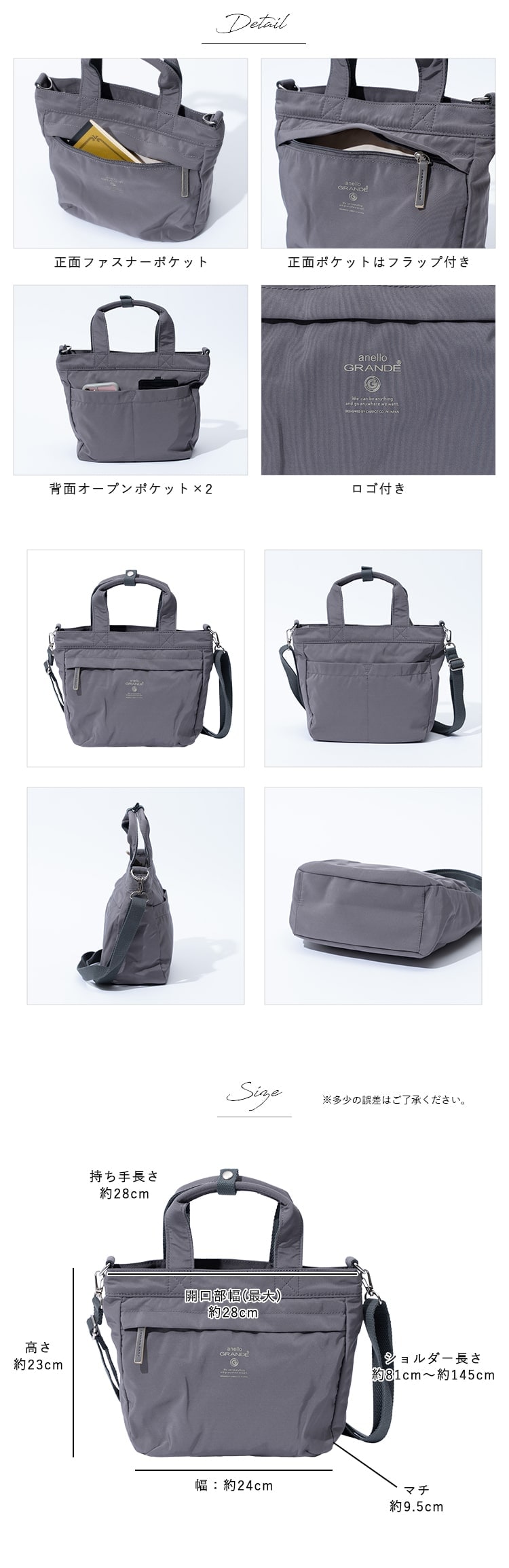肩掛けと手持ちが出来る2way仕様で、ショルダーストラップは取り外し可能。