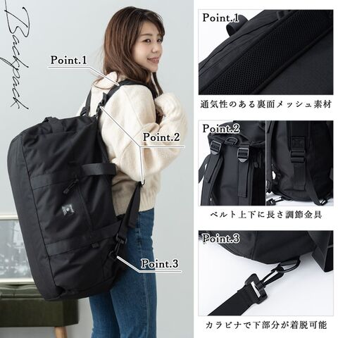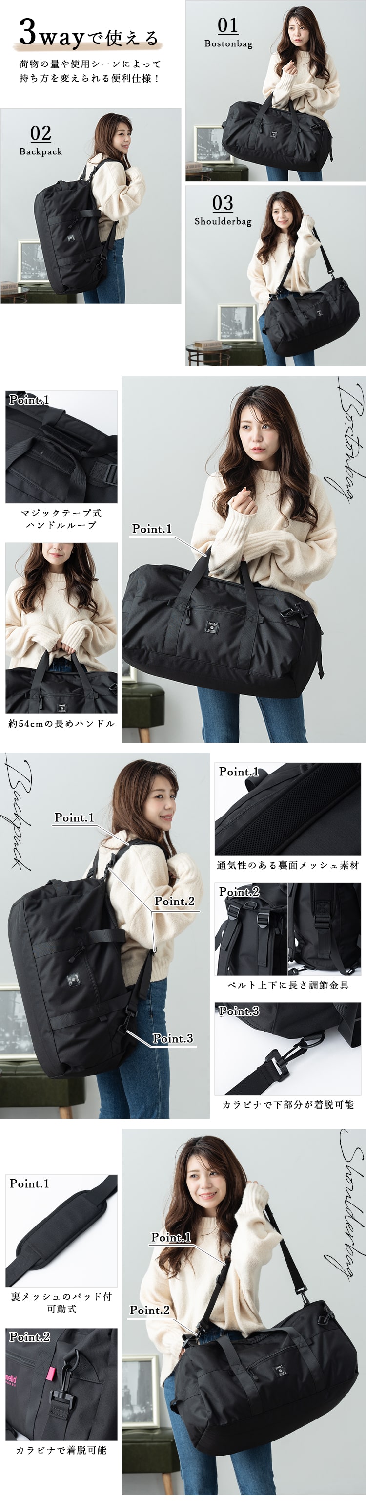 強度の高いリップストップ生地を使用した、大容量サイズのハイキャパシティボストンバッグ。