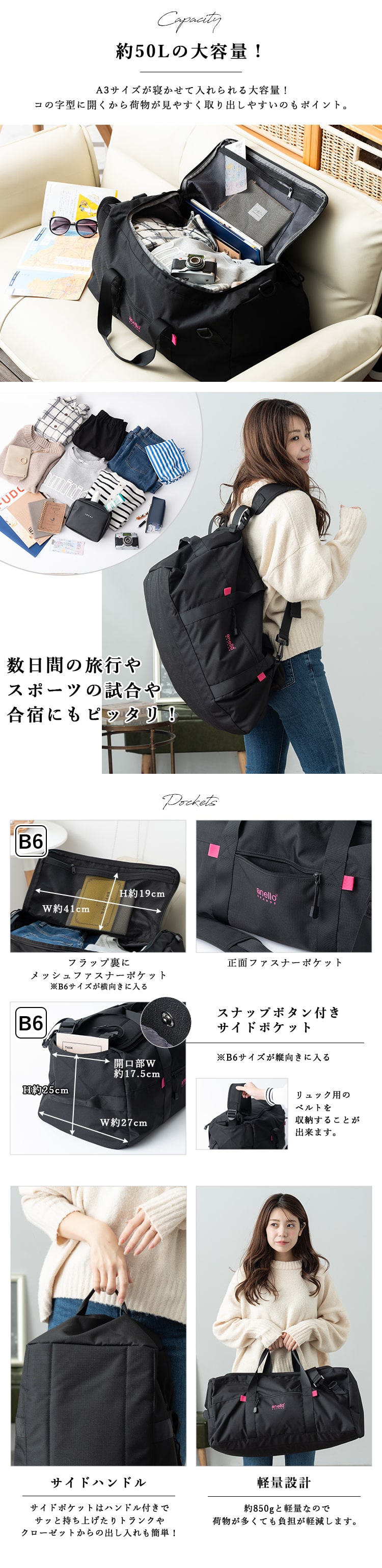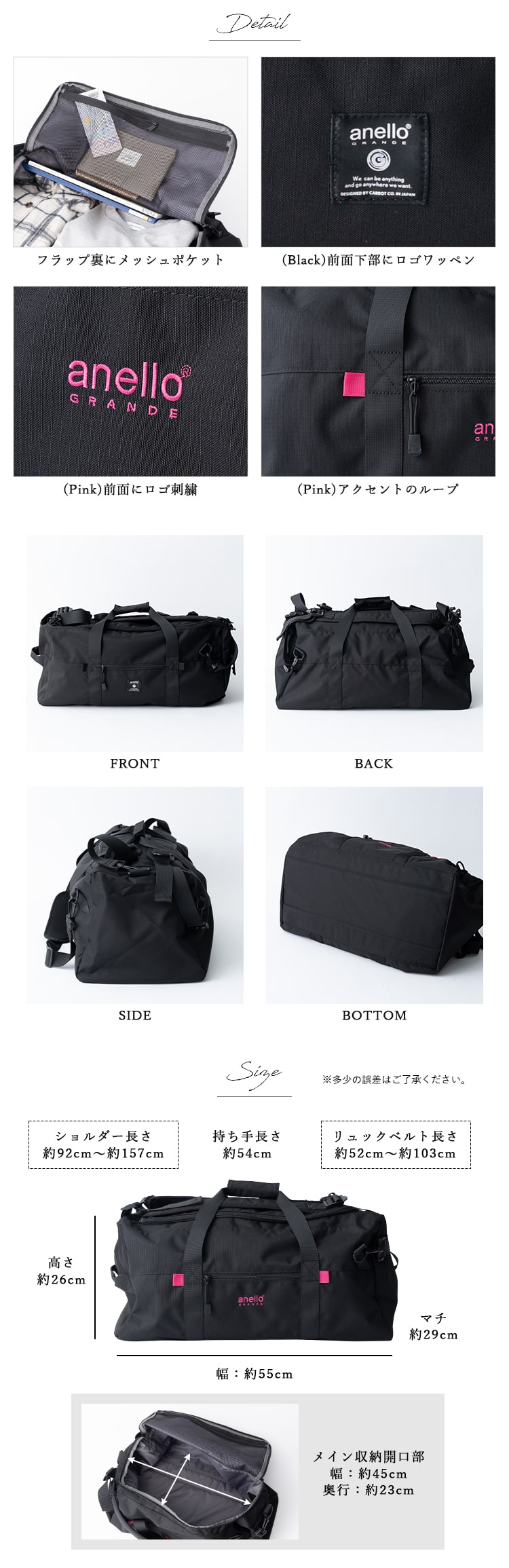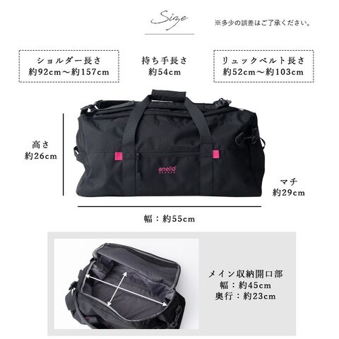 ボストンバッグ レディース ブランド アネロ 旅行 大容量 50l メンズ 撥水 軽量 3way リュック おしゃれ ビジネス 2泊3日 Pink