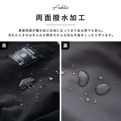 生地は両面が撥水加工になっており、急な雨でも内部が濡れたときもサッとお手入れできます。