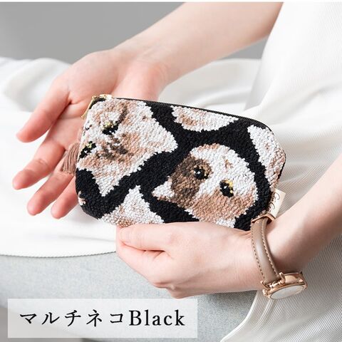 ポーチ 小物入れ 小さめ おしゃれ かわいい 舟形 シェニール織り ブランド グーグーワールド 猫 コスメポーチ ギフト マルチネコBlack