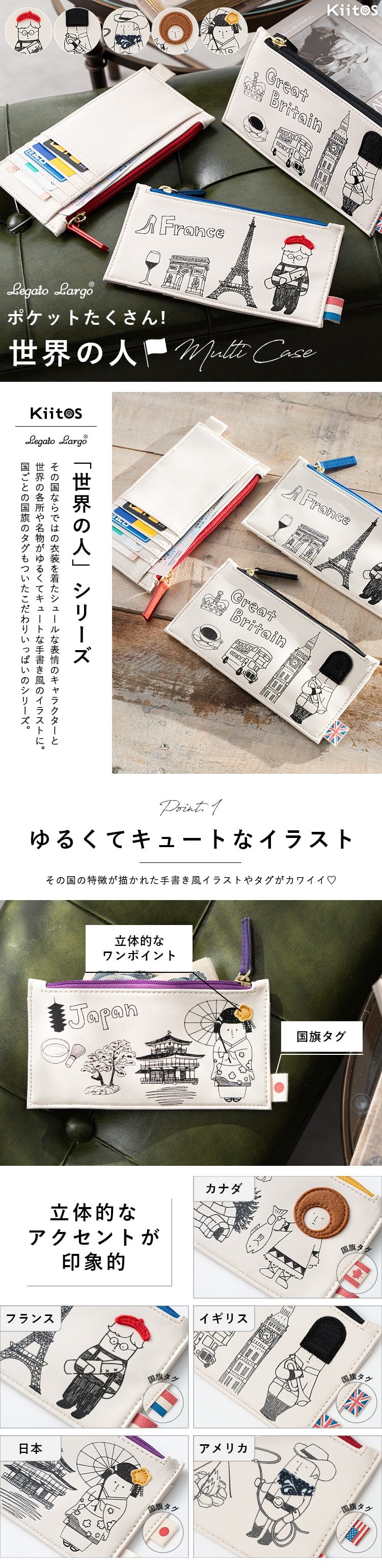 国ごとの国旗のタグもついたこだわりいっぱいの「世界の人」シリーズの長財布。