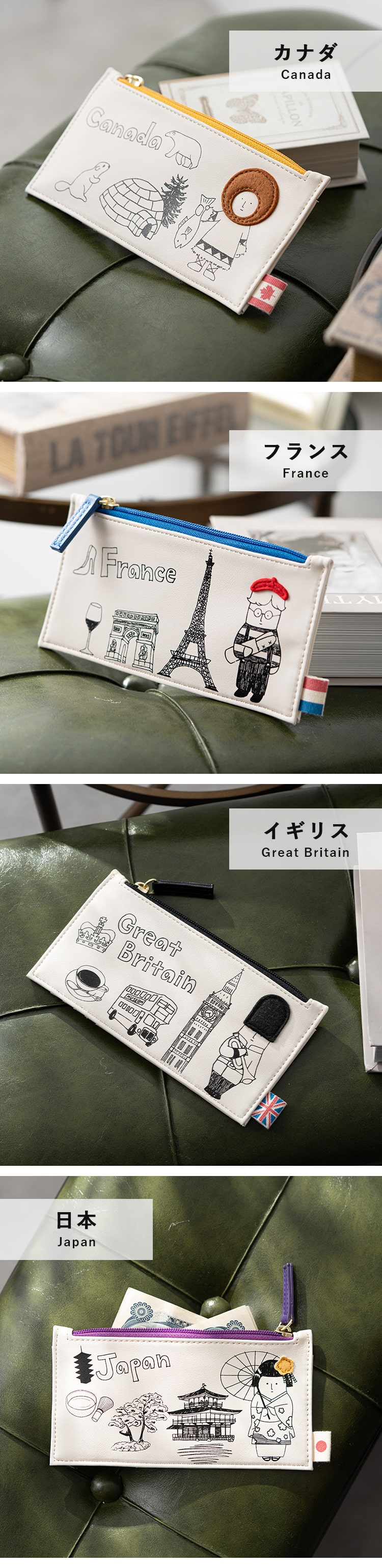 イラストには各国の特徴が際立つ立体的なアクセントが印象的です。