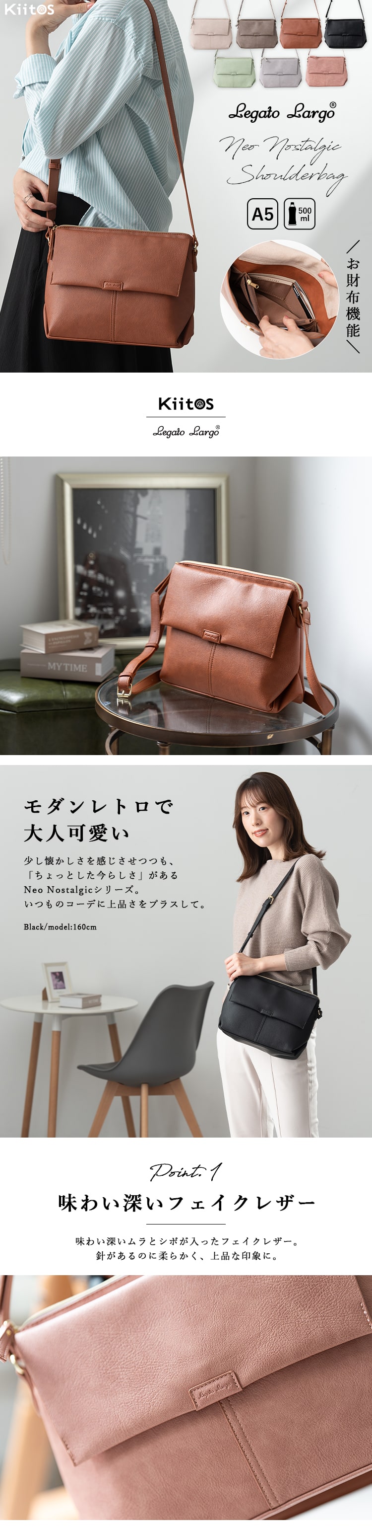 柔らかさと程よい自立感もあり、デイリー使いに馴染むショルダーバッグにお財布機能がプラスされました!