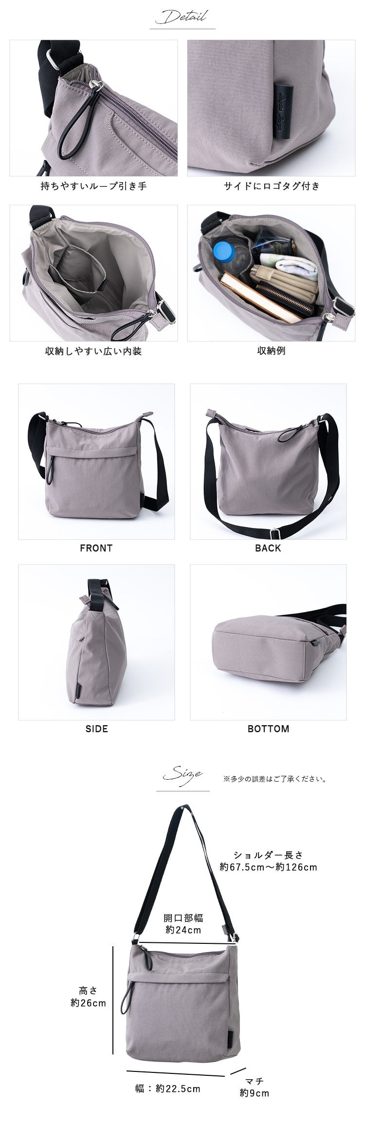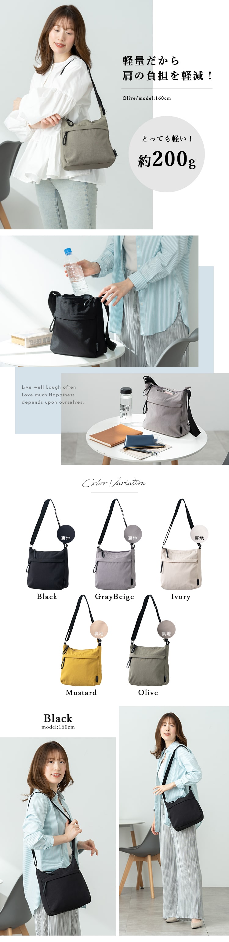見た目以上に軽いから肩の負担も軽くしてくれる、万能ショルダーバッグです。
