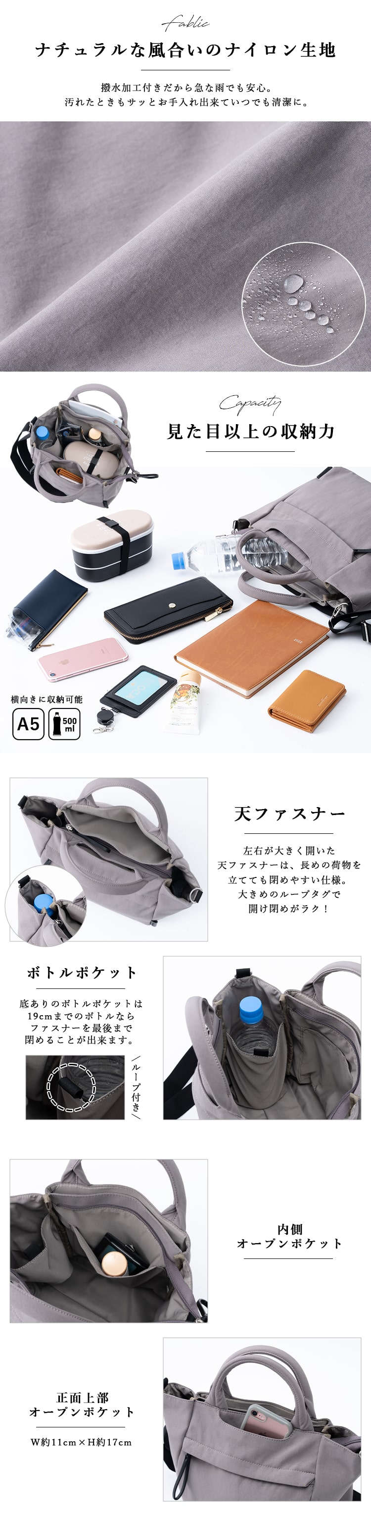 トップポケット:W約11cm×H約17cm