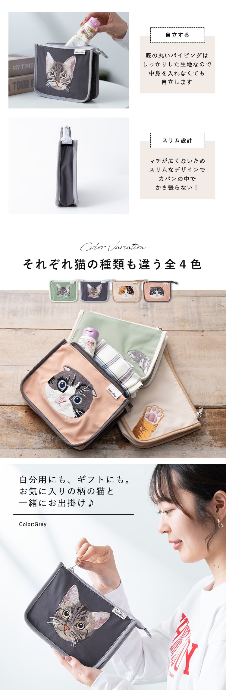 カラーによって猫の種類も違うので、お気に入りを見つけて♪