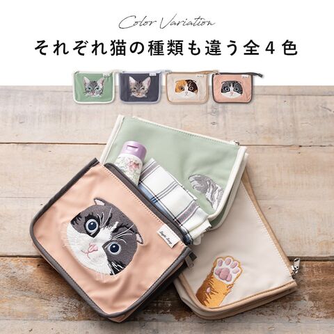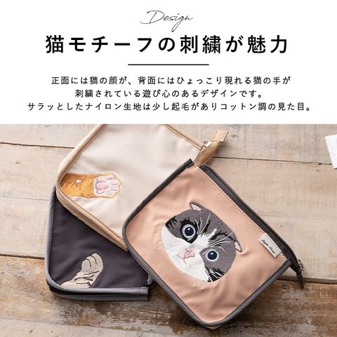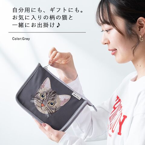 オリジナルの猫モチーフの刺繍が魅力のポーチ。