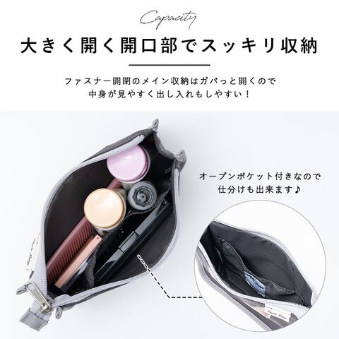 使いやすいマチ付きのポーチは、開口部が大きく開き、見た目以上の収納力。