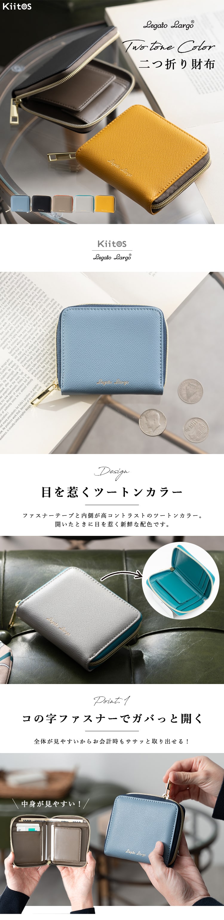 ツートンカラーが目を惹くレガートラルゴの二つ折り財布。