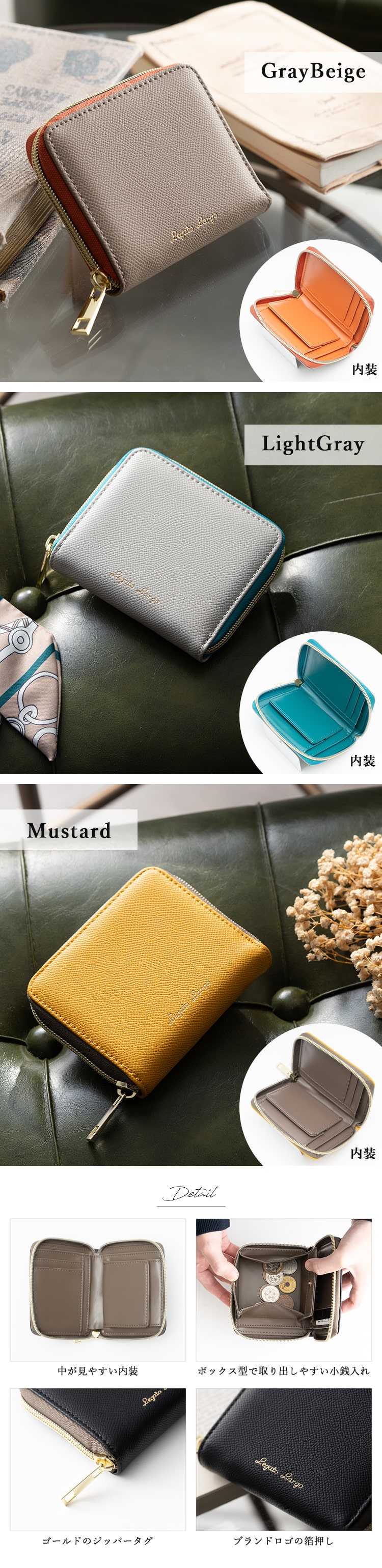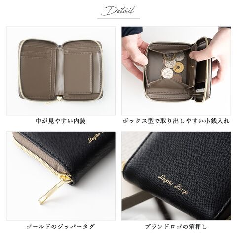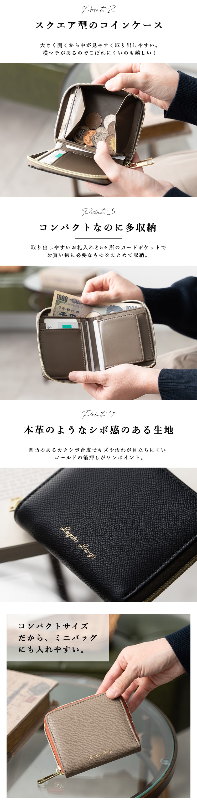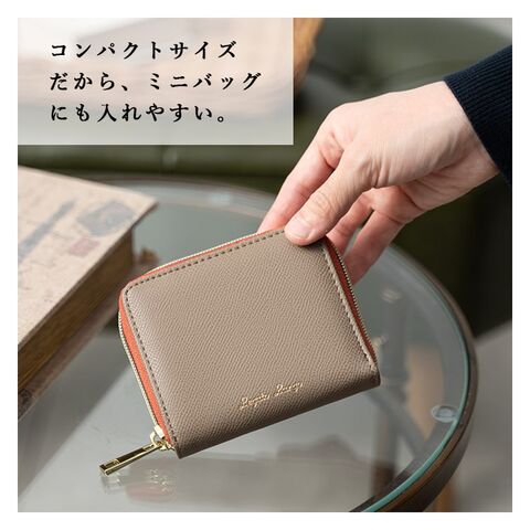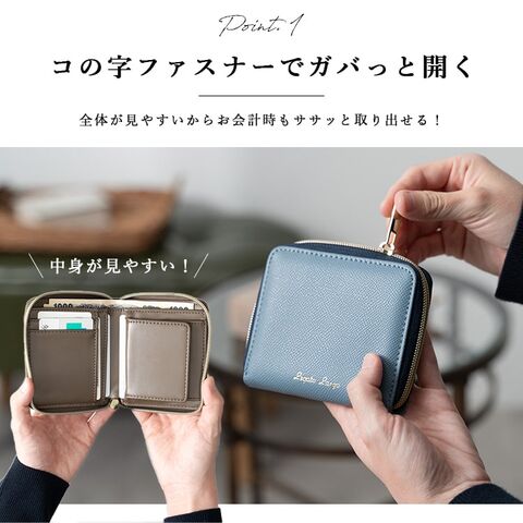 コの字ファスナーでガバっと開くから全体が見やすく、お会計時もササッと取り出せる。