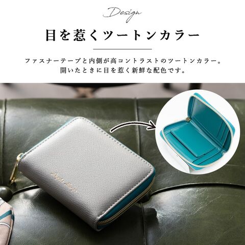 ファスナーテープと内側が高コントラストのツートンカラーで、開いたときに目を惹く新鮮な配色です。
