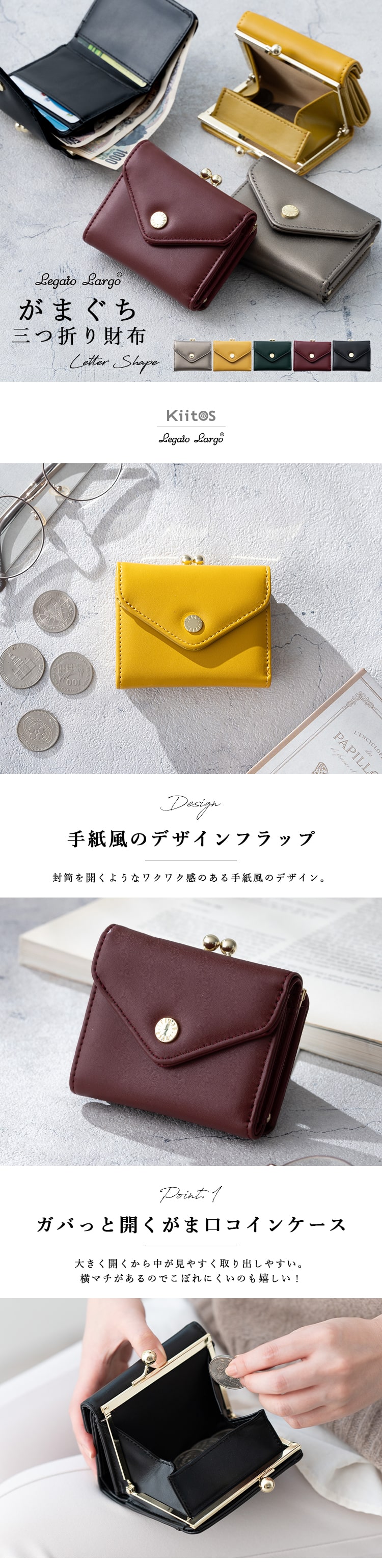 財布 レディース 三つ折り ブランド がま口 レガートラルゴ おしゃれ 大人 ギフト 小さめ 小銭入れ カード入れ ブラック